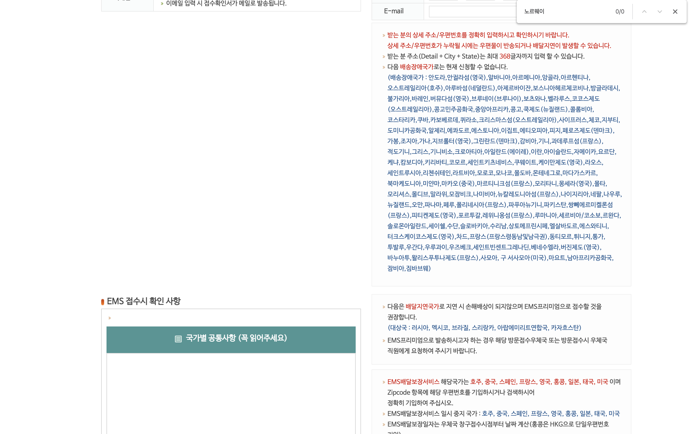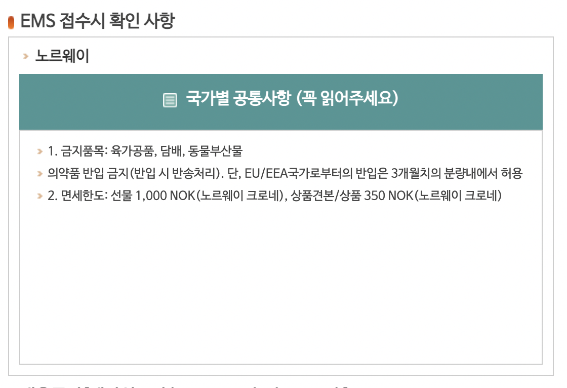 dhl 아니면 선편으로 가능했던 노르웨이, 이제는 EMS가 가능하다.