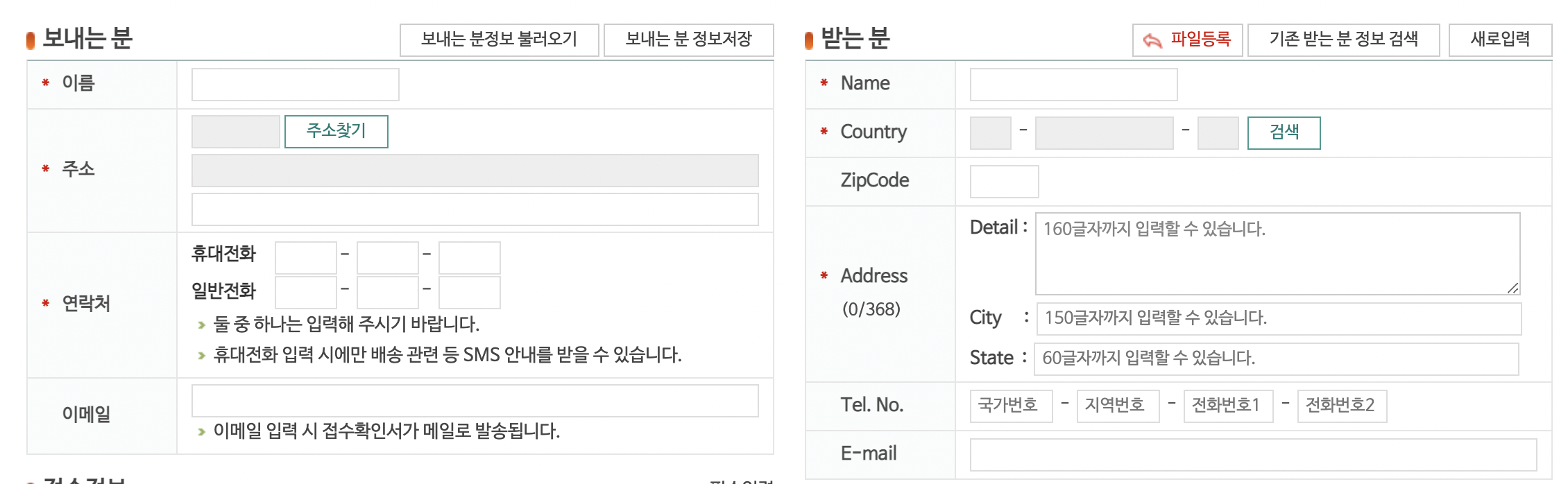 한 번 스마트접수로 보낸 이력이 있으면 '기존 받는 분 정보 검색' 해서 입력하면 되니 편할 것 같다.