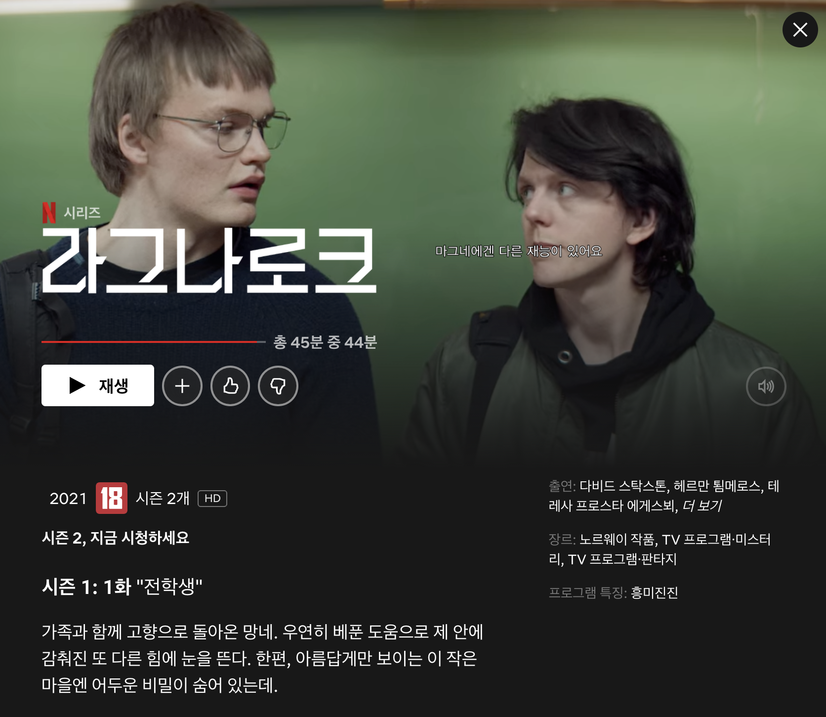 노르웨이 콘텐츠가 넷플릭스에 그렇게 많은 편은 아니다. 😞