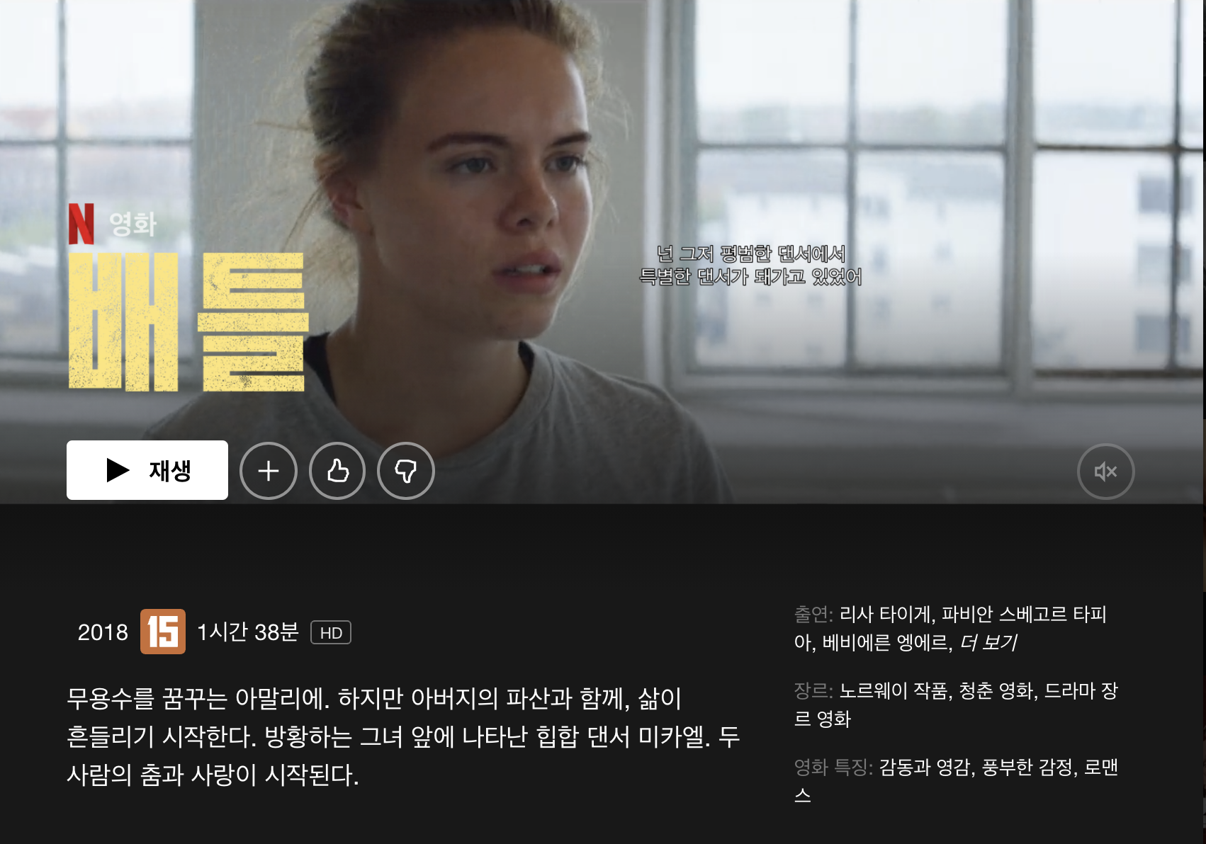 <SKAM>에서 에바 역으로 나왔던 리사 타이게가 주연으로 나온다. 비보이, 발레리나 연애하는 익숙한 스텝업 컨셉
