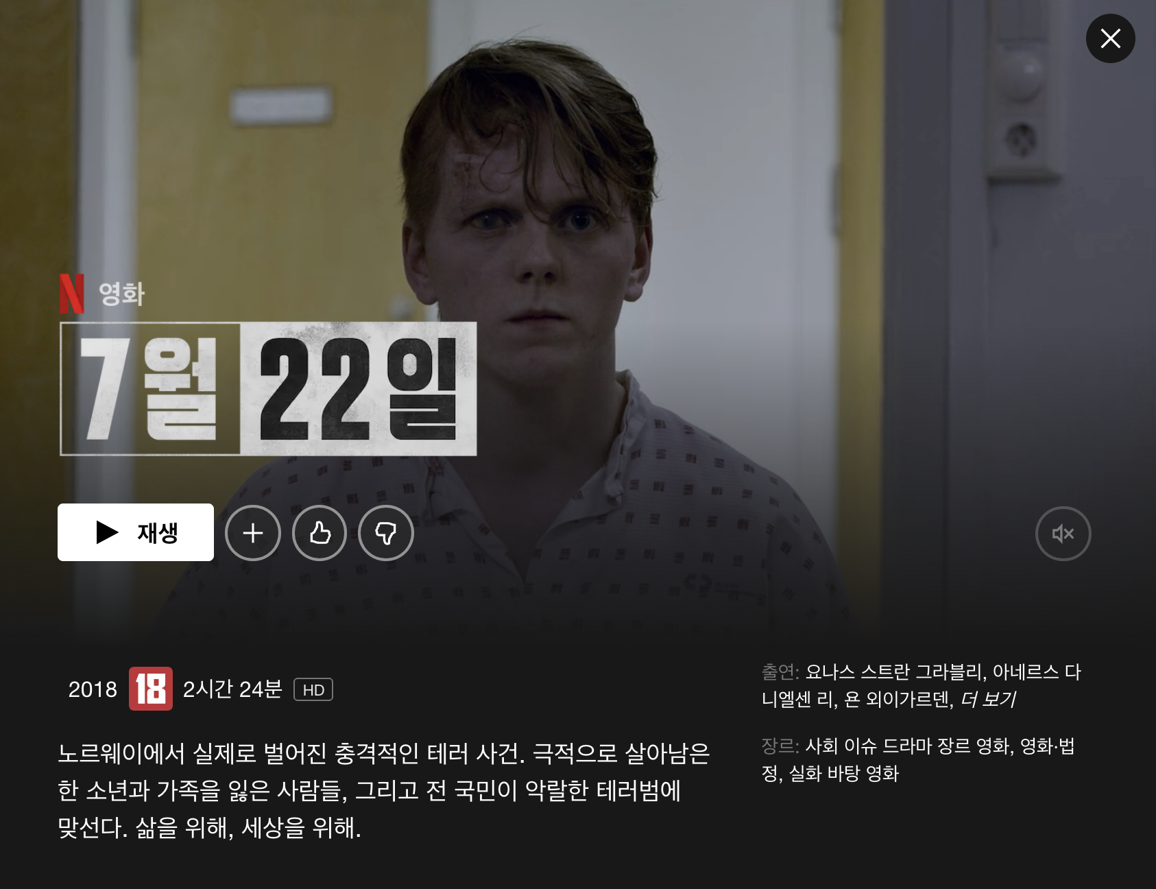 요나스 스트란 그라블리가 연기했다. 2011년 7월 22일에 극우주의자가 일으킨 테러를 바탕으로 만든 실화 영화이다.