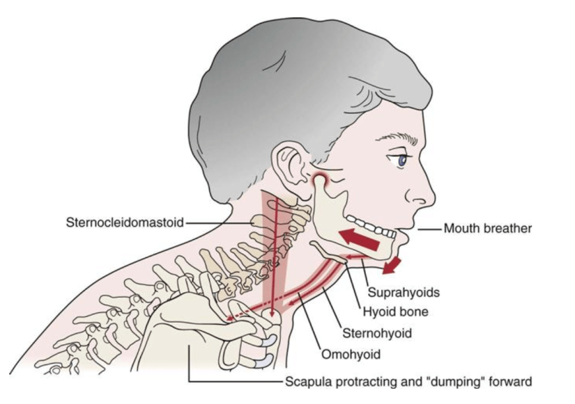 목뼈 위주로 무게중심을 보면 하중이 앞으로 쏠려있다. 저 자세는 머리무게를 그대로 받고있다.
