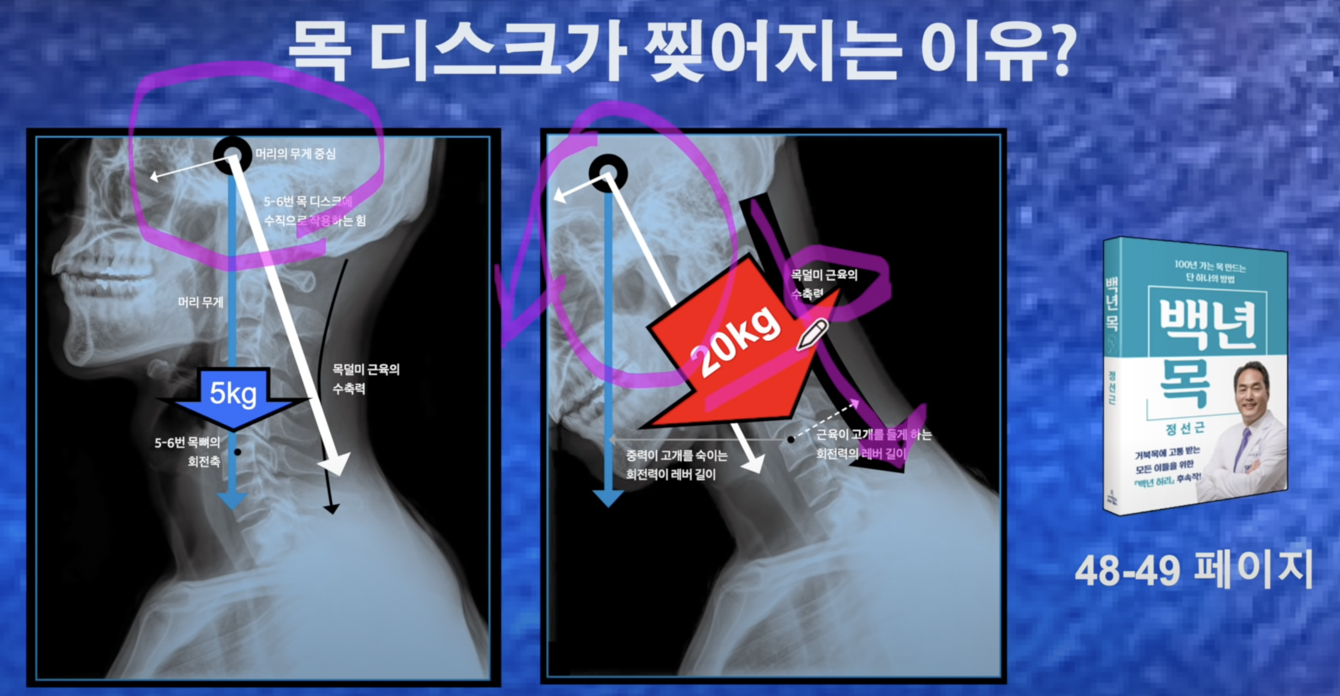 하지만 맥켄지 자세처럼 어깨와 척추를 피면 목디스크가 받는 하중은 5kg밖에 안된다고 한다.