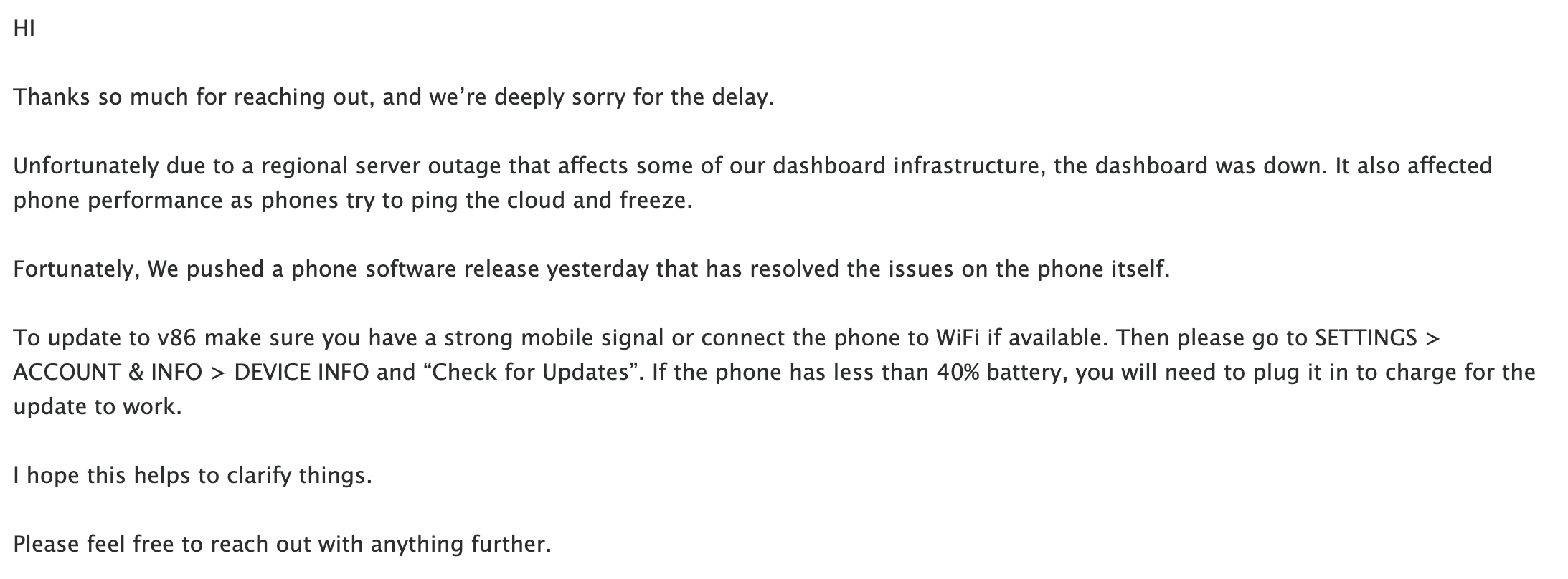 내 핸드폰 언제쯤 도착하냐고 메일 보냈더니