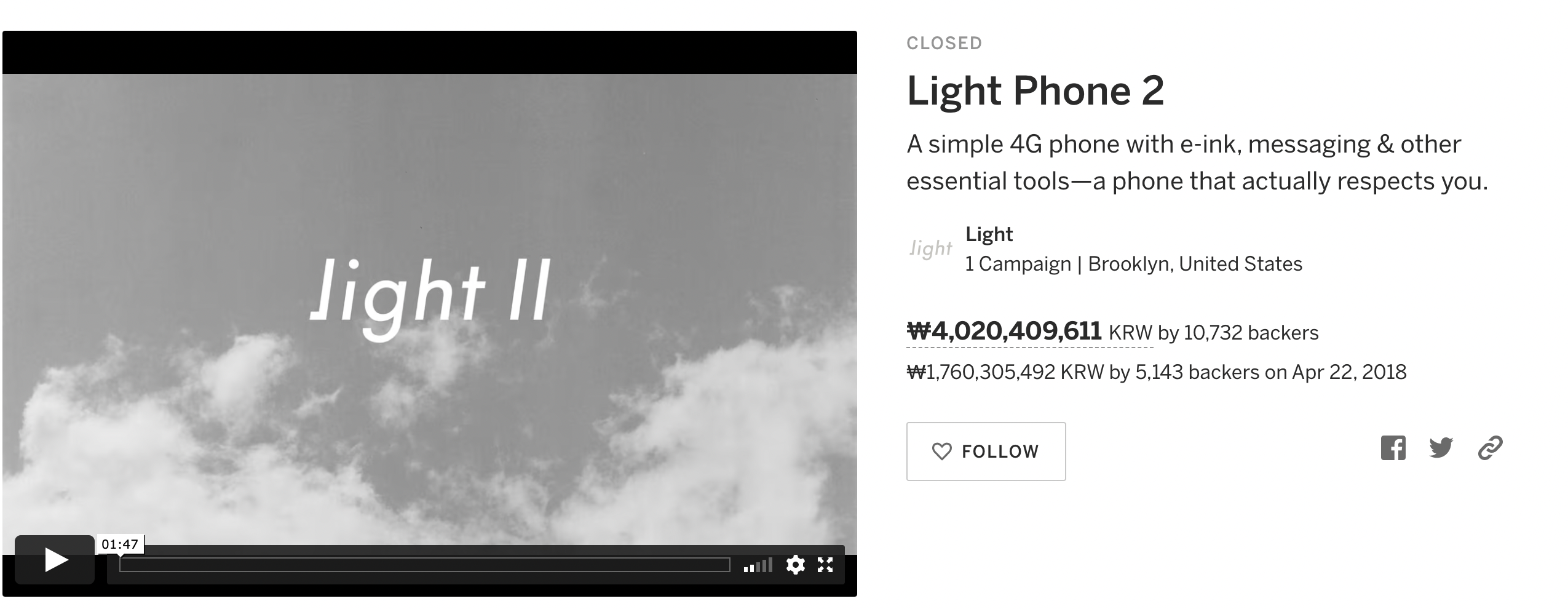 전자잉크와 미니멀리즘에 관심 있을 때 크라우드 펀딩 사이트 인디고고에서 이 두개를 합친 폰을 발견했다. thelightphone 회사의 라이트폰2 였다. Joe Hollier 와 Kaiwei Tang이 공동으로 만들었는데, 구