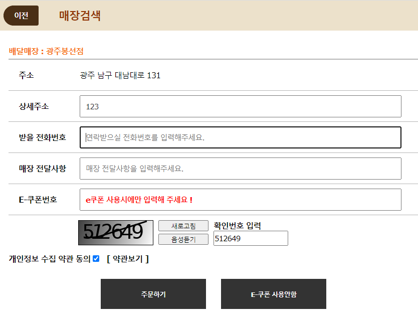 2. e쿠폰 예약주문배달 불가