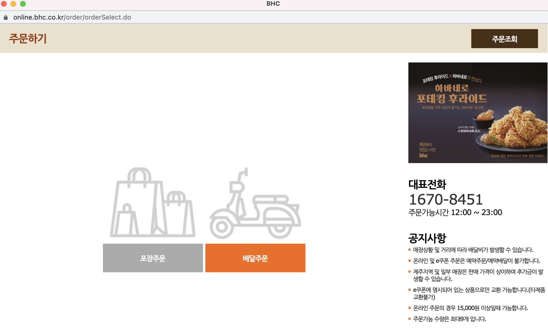 bhc 어플 다운받기 귀찮으면 PC 또는 모바일 웹페이지에서 진행할 수 있다.
