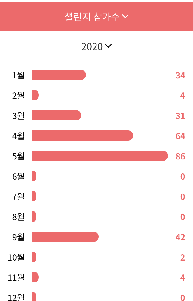 우측 사진처럼 올해 남은 기간 한정 테마로 의지를 북돋아주는 챌린지도 있다.