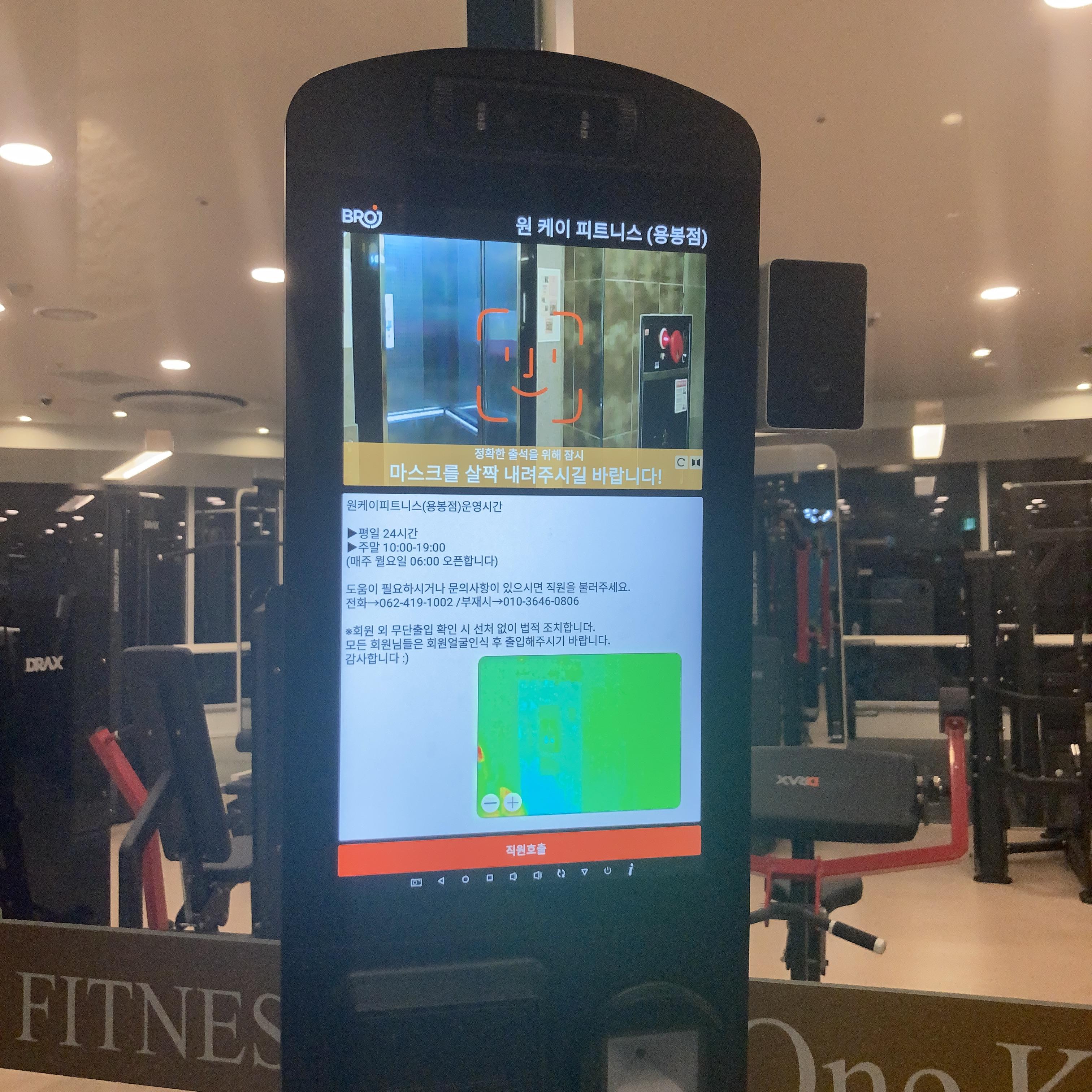 회원확인, 체온 36도, 남은 결제기간 등이 한번에 보인다.