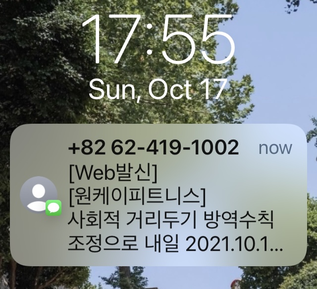 원케이피트니스에서 해제되면 문자 보내준다고 했다