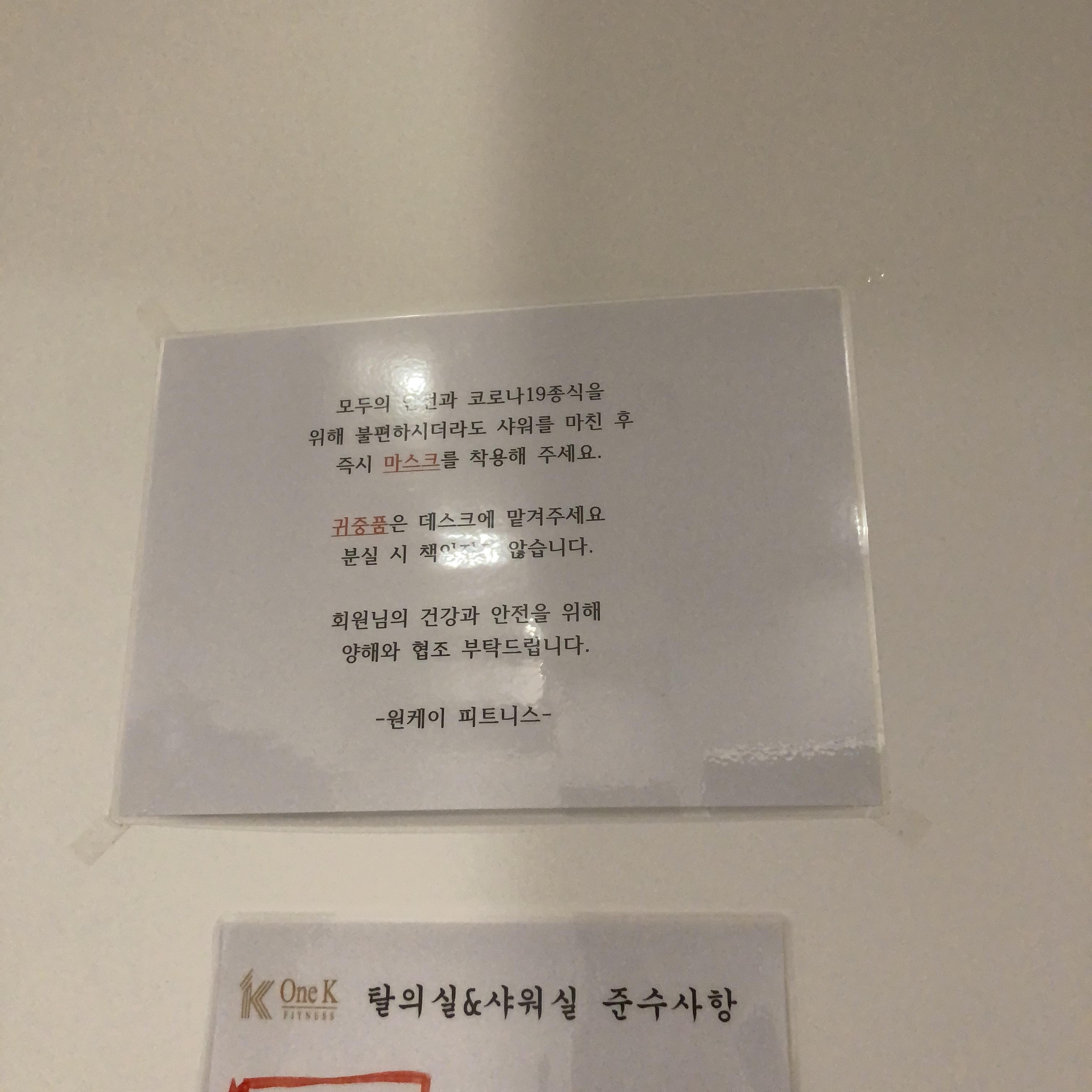 탈의실 내 신발 벗기/ 귀중품은 데스크에/ 마스크 빨리 쓰기!