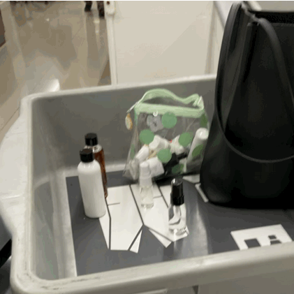 주머니 비우고 바구니에 옷 담아서 X-ray기계를 통과하는데