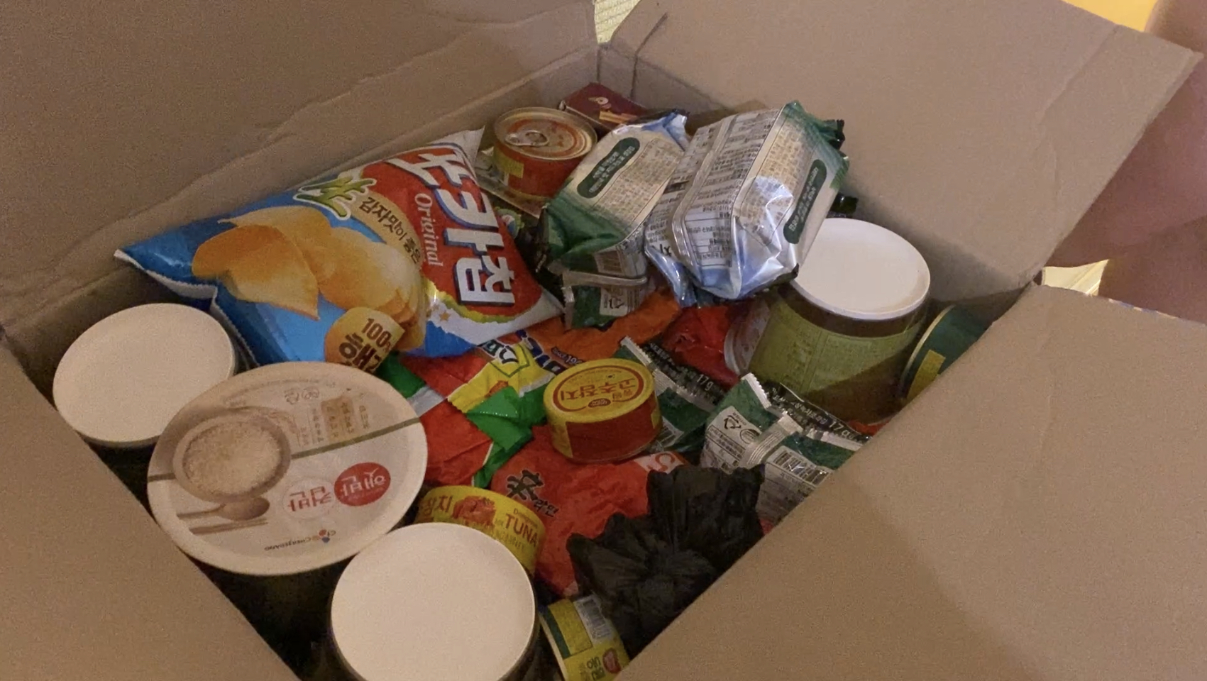 미어터진 것은 가운데 포카칩 어니언맛이었다 ㅠㅠ