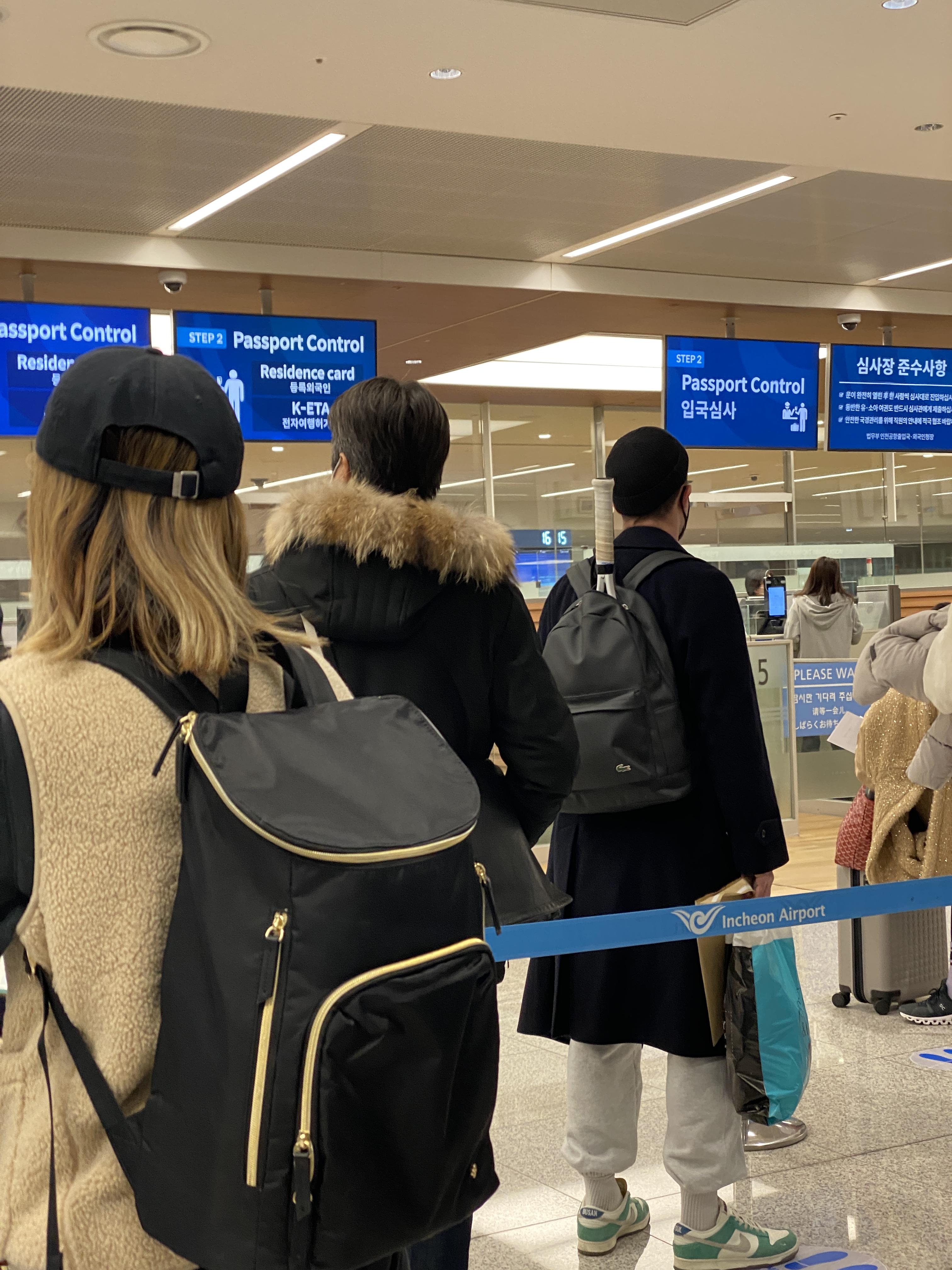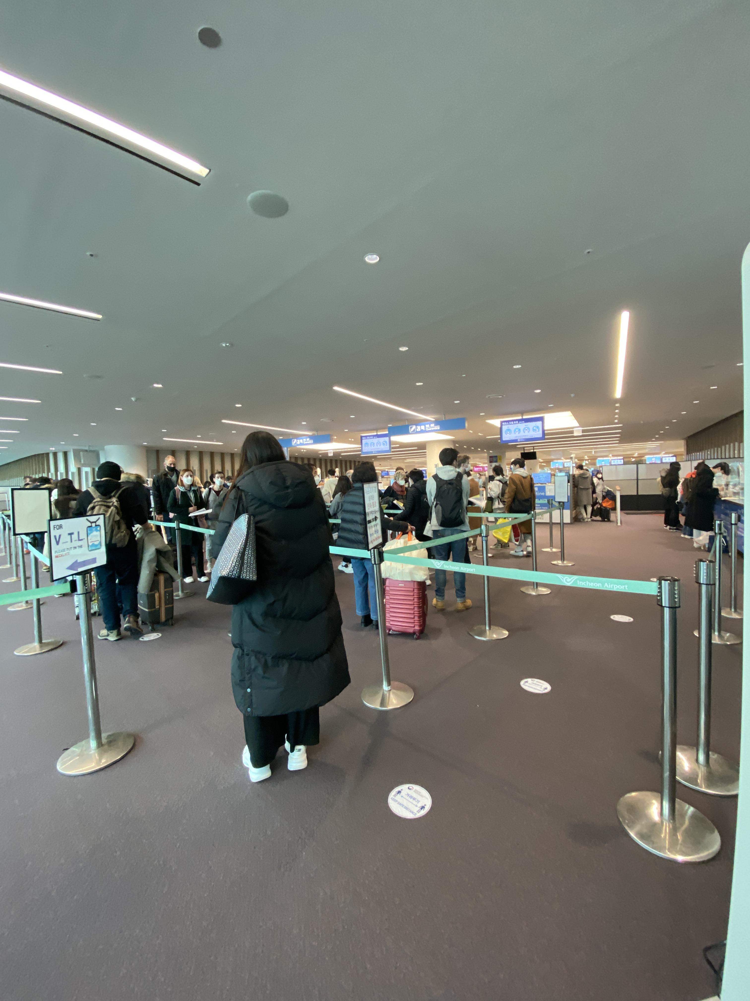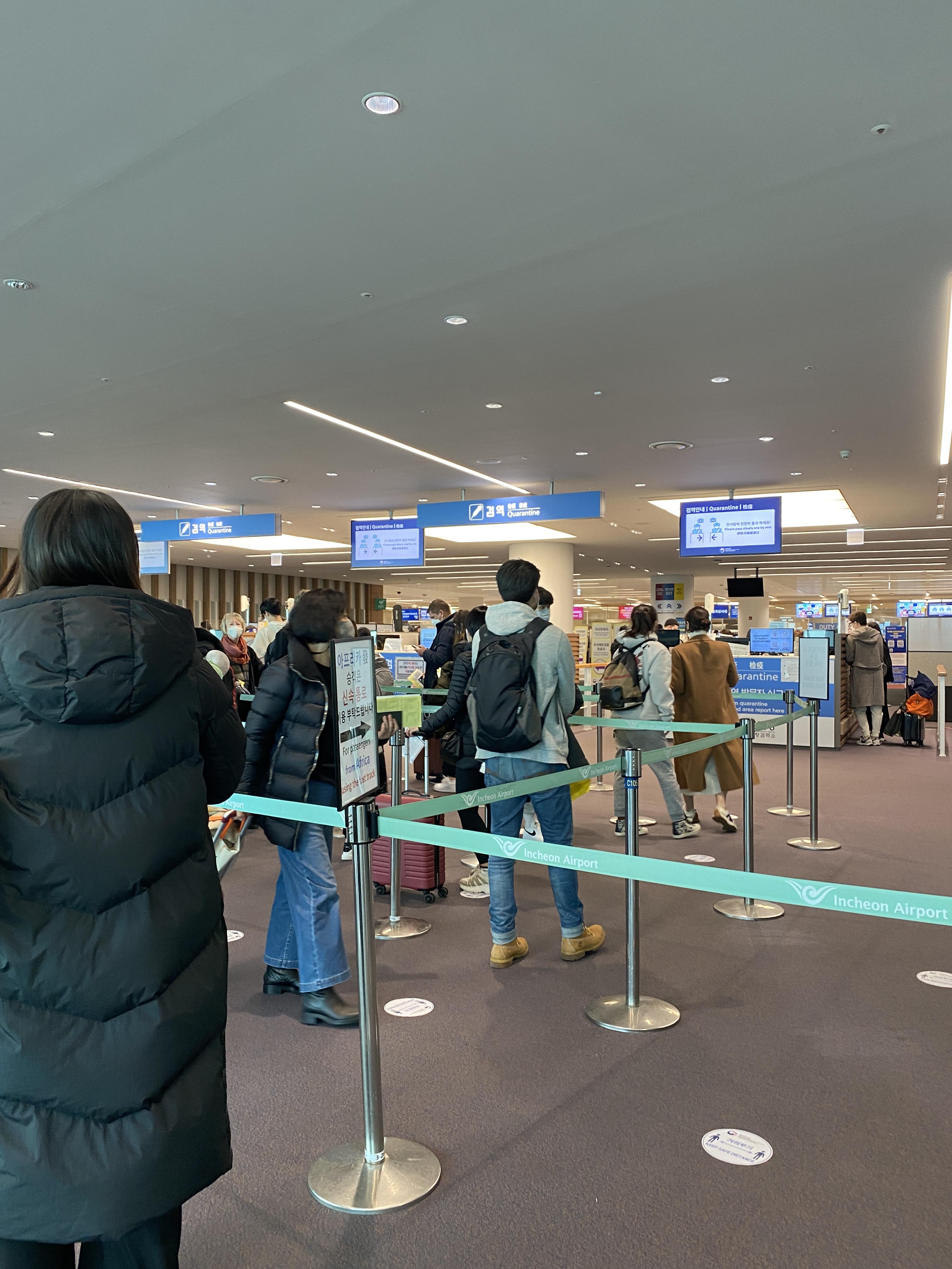 비행기에서 내리고 입국절차를 위해 줄 서는데