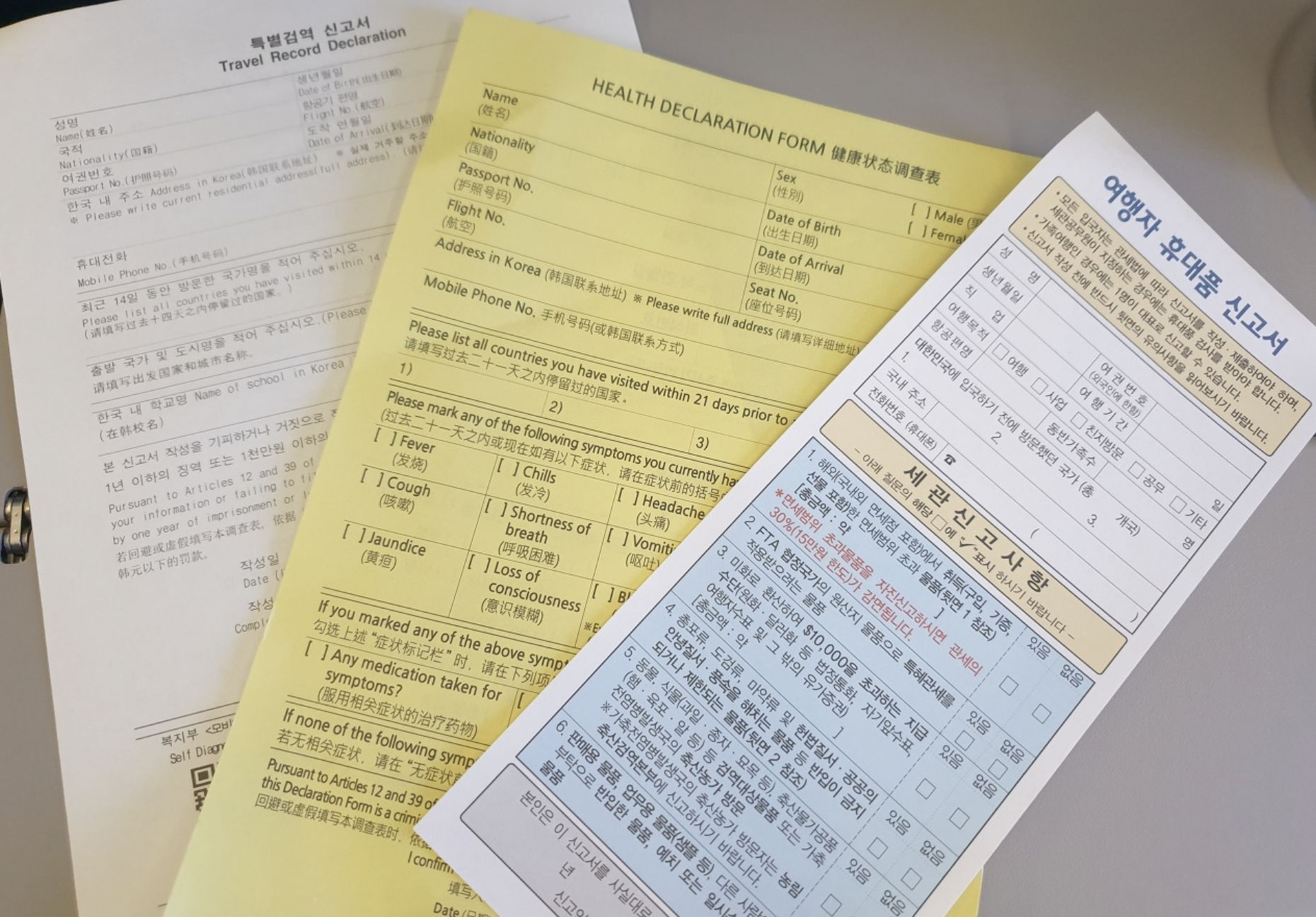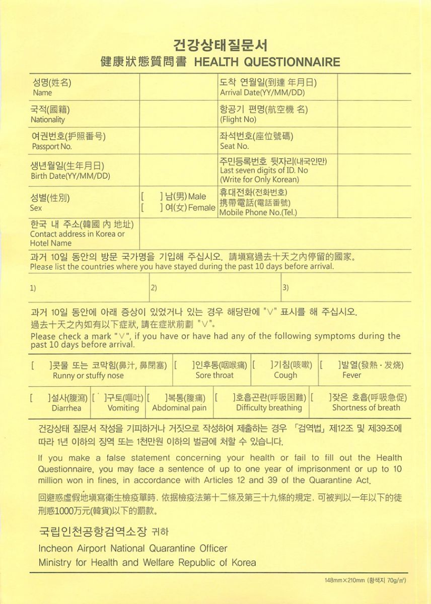 건강상태질문서와 특별검역신고서를