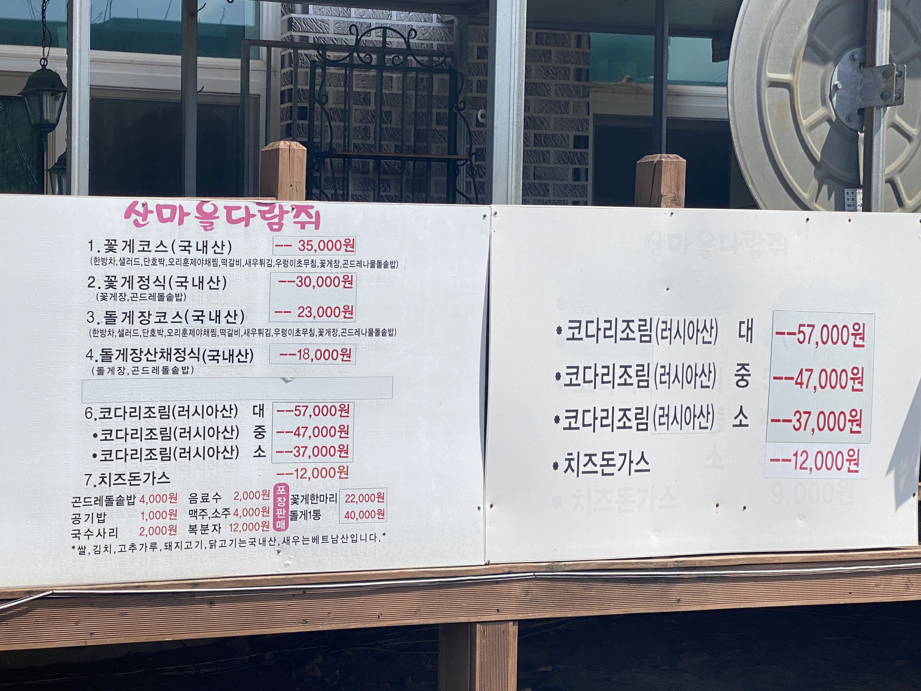 산마을다람쥐 영업시간은 영업시간은 매일 11:00 ~ 20:00 이고, 매월 1,3번째 수요일은 쉰다. 단체예약도 받는 듯 하다.