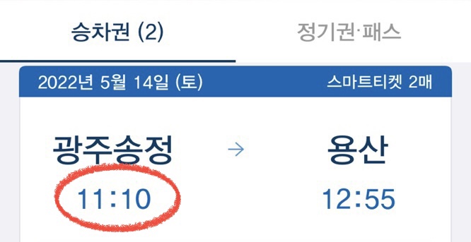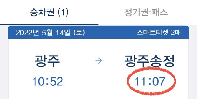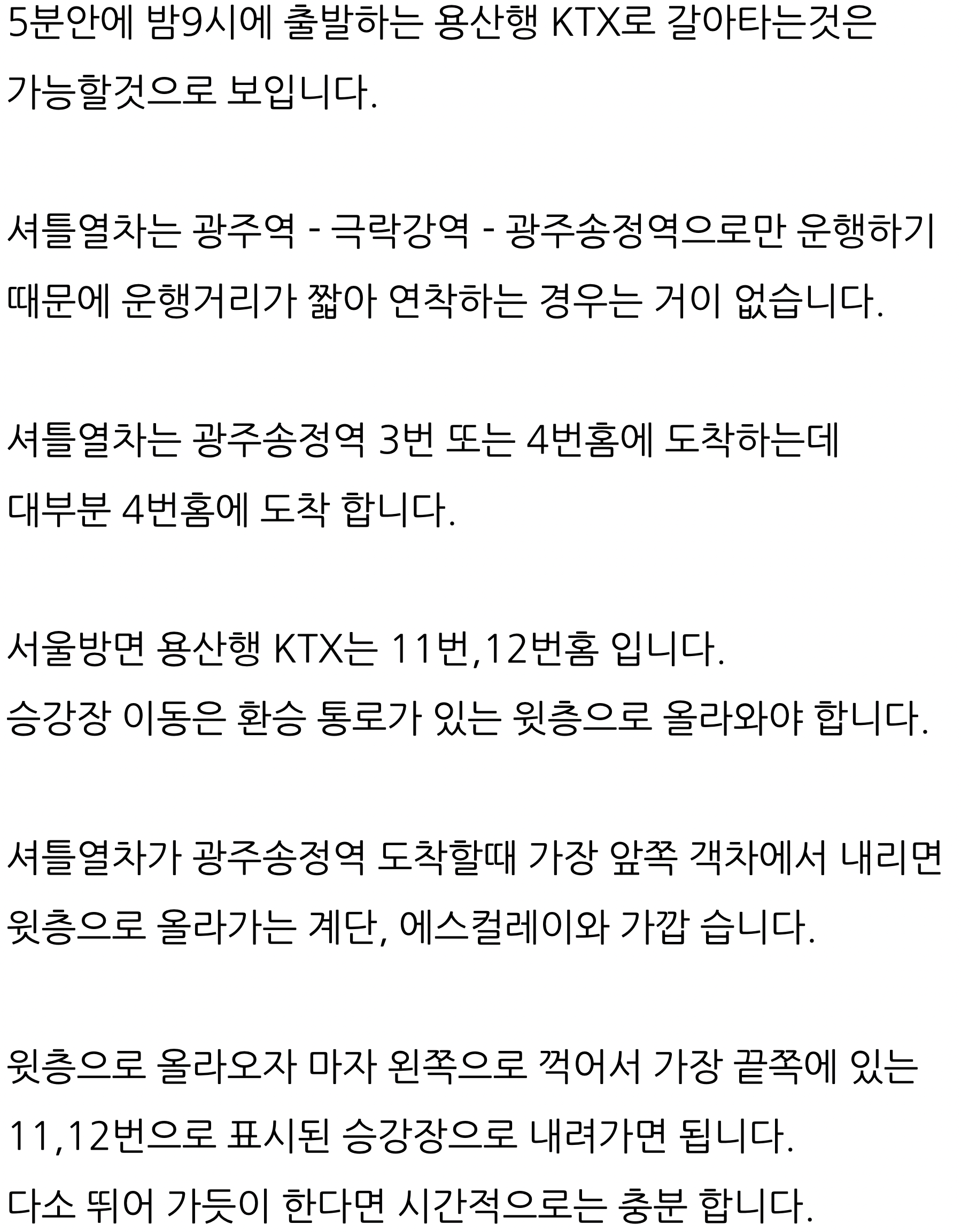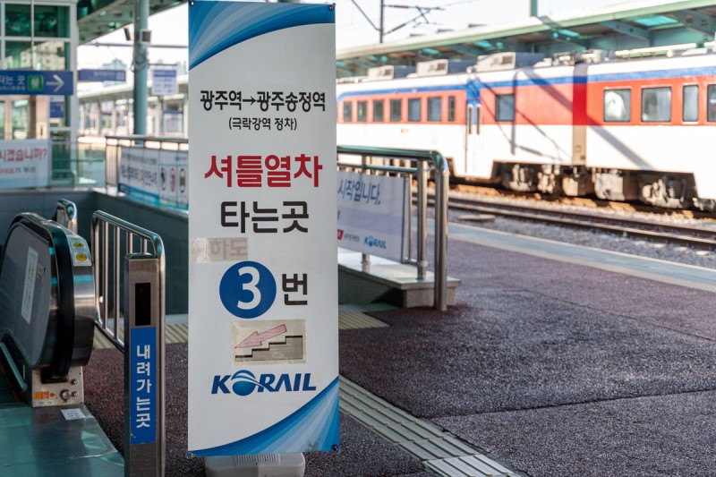 광주역에서 송정역까지 셔틀열차 이용 후 환승시간이 3분이 주어졌다.