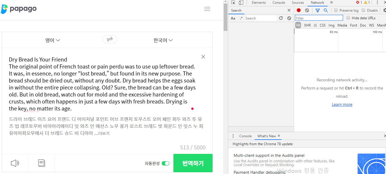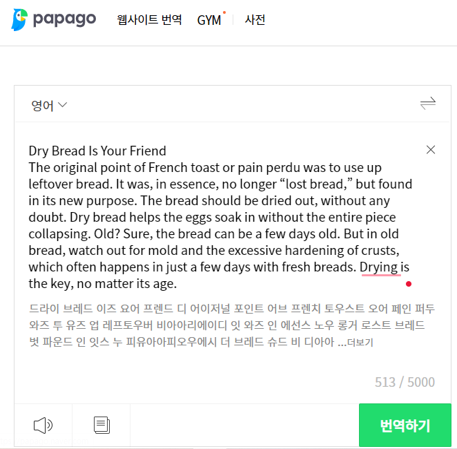 기사나 글감을 준비하고 파파고 사이트에 붙여넣기 한다.