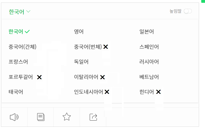 안타깝게도 포루투갈어 이탈리아어 인도네시아어 힌디어는 제공되지 않는다. ❌