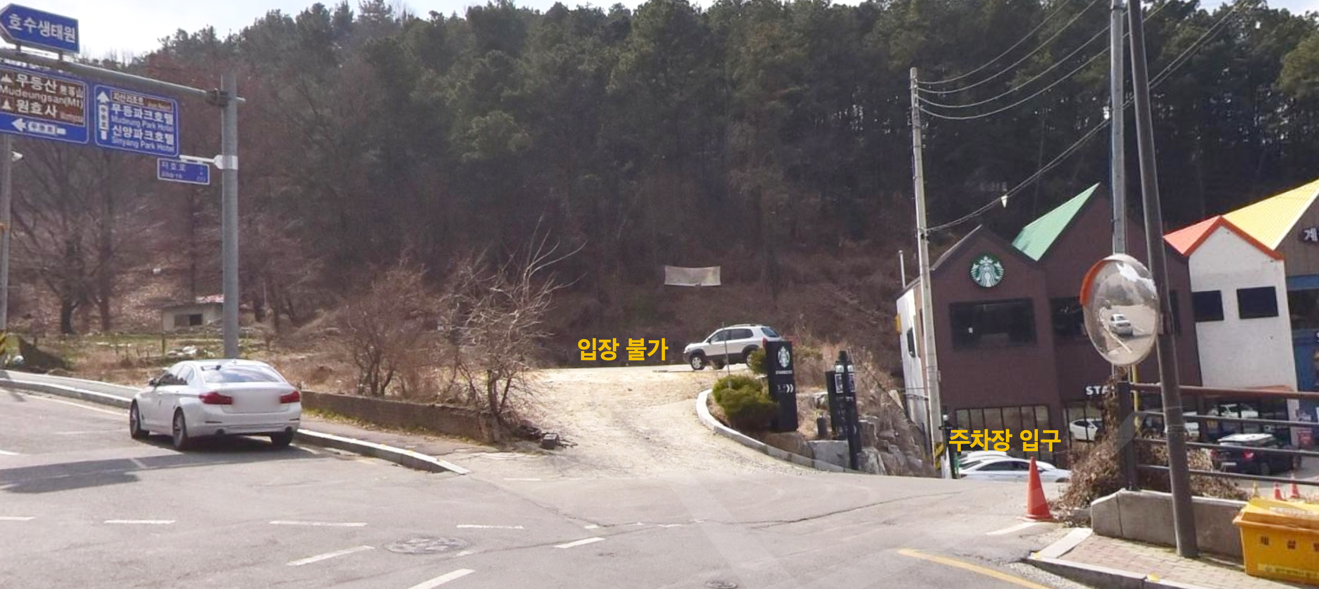 스벅 안에서 주차장 입구방향 사진
