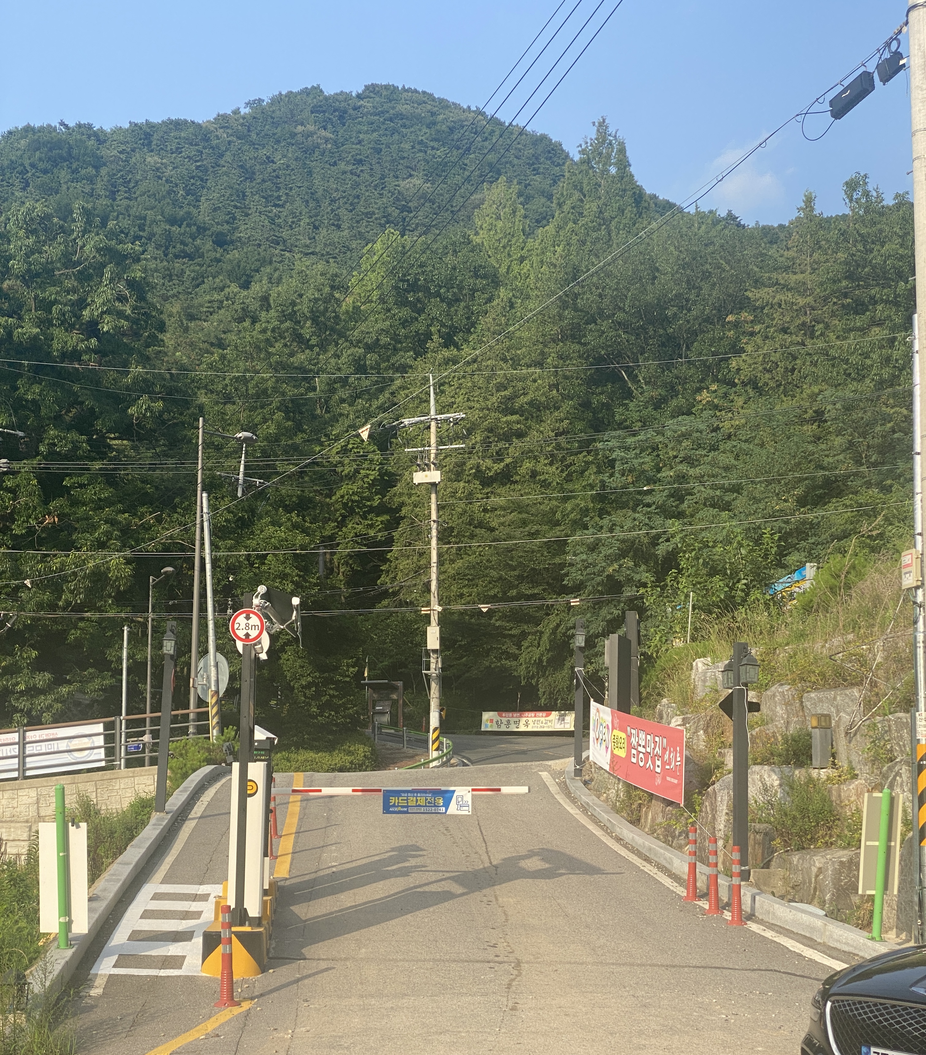 내리막길에 주차 차단바가 생겼다