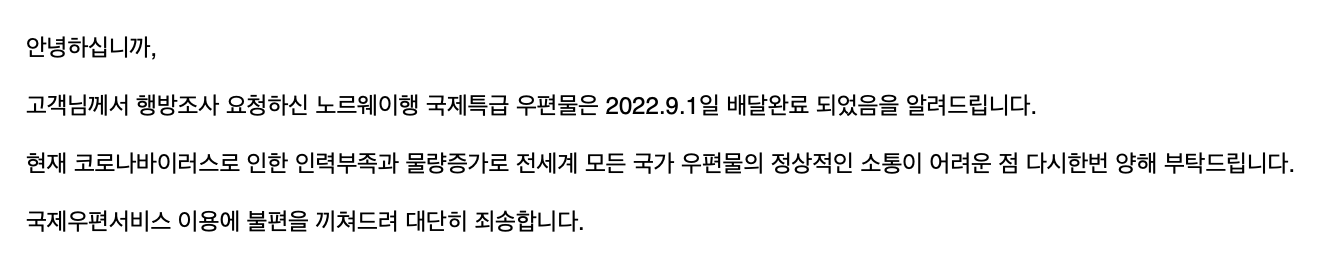 노르웨이 우체국에서 조회해도