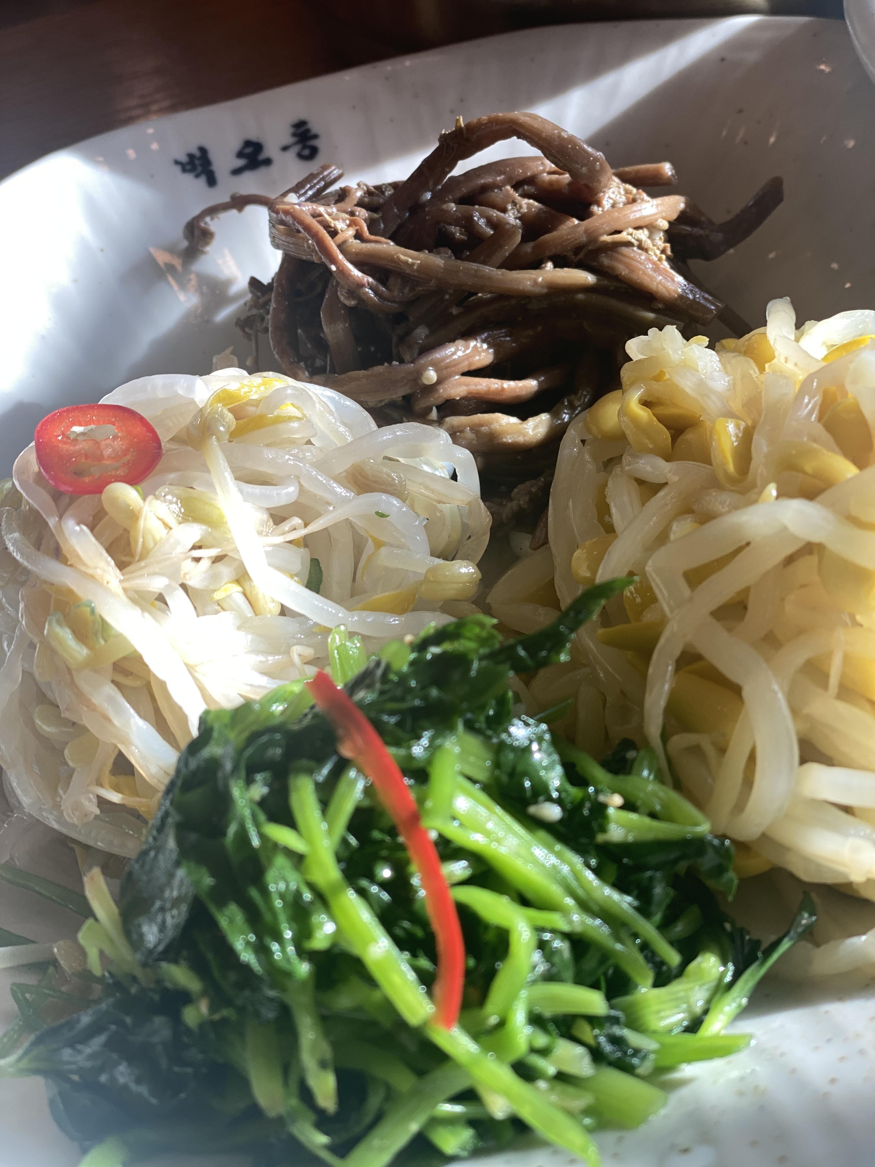 도토리묵, 계란찜, 젓갈 등등