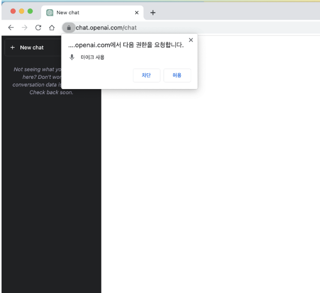 왼쪽 상단에 마이크 허용 팝업이 뜬다
