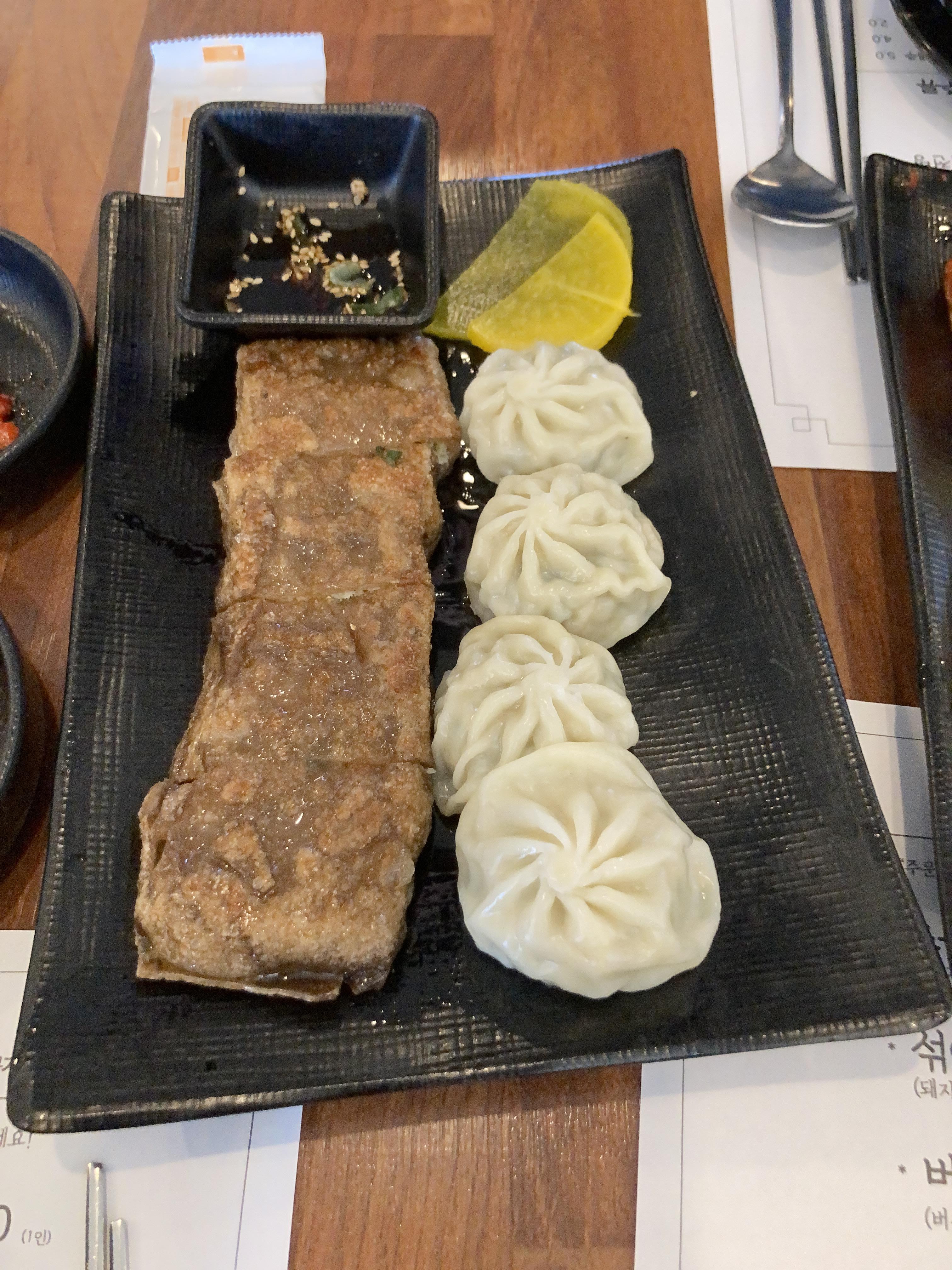 바삭하게 튀겨진 메밀전병과 만두