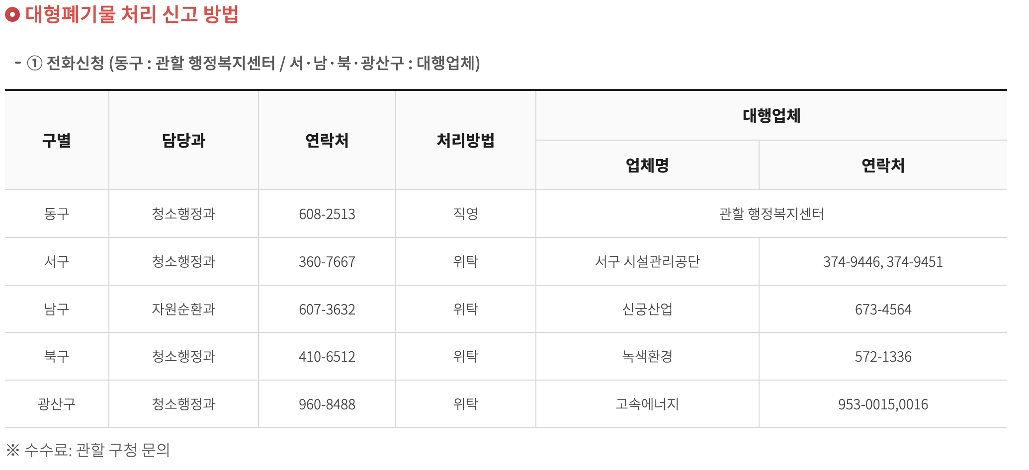 나머지 서구, 남구, 북구, 광산구는 위탁업체로 전화하면 된다.