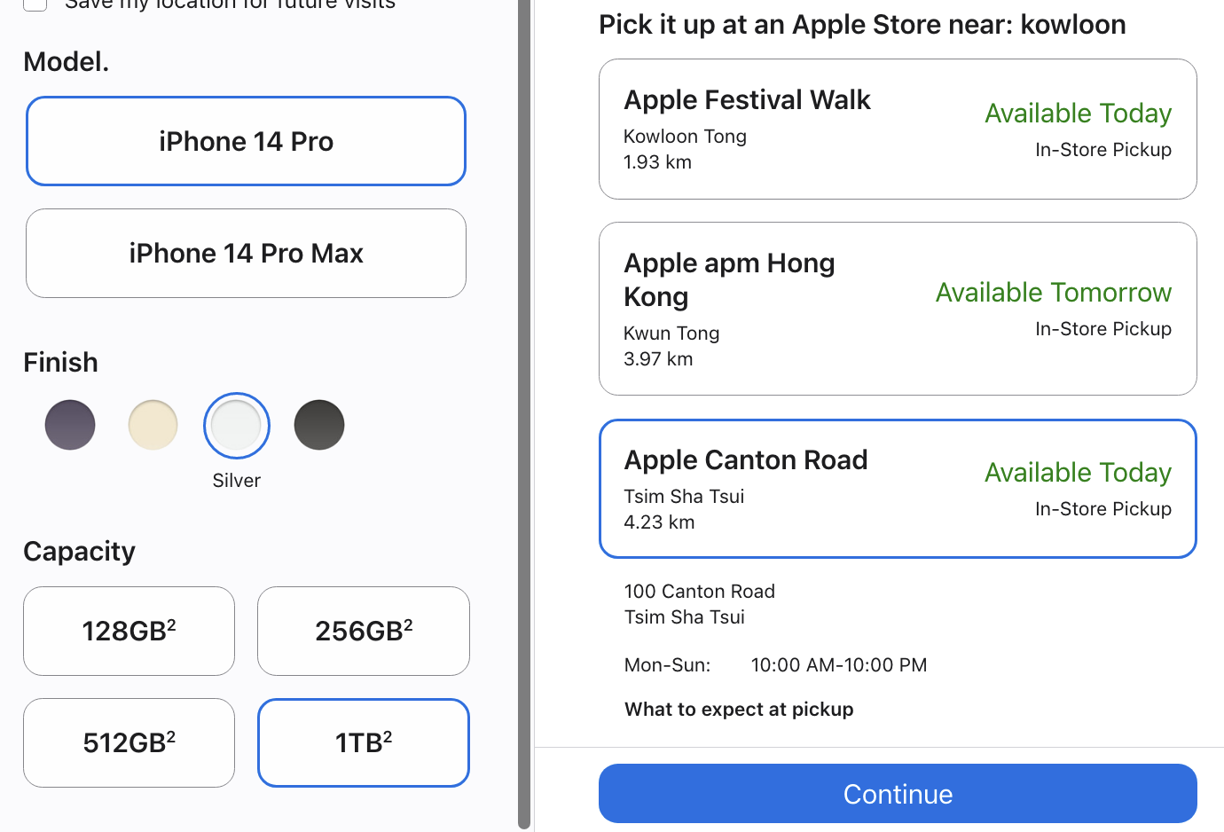 Apple Canton Road 지점을 선택했다