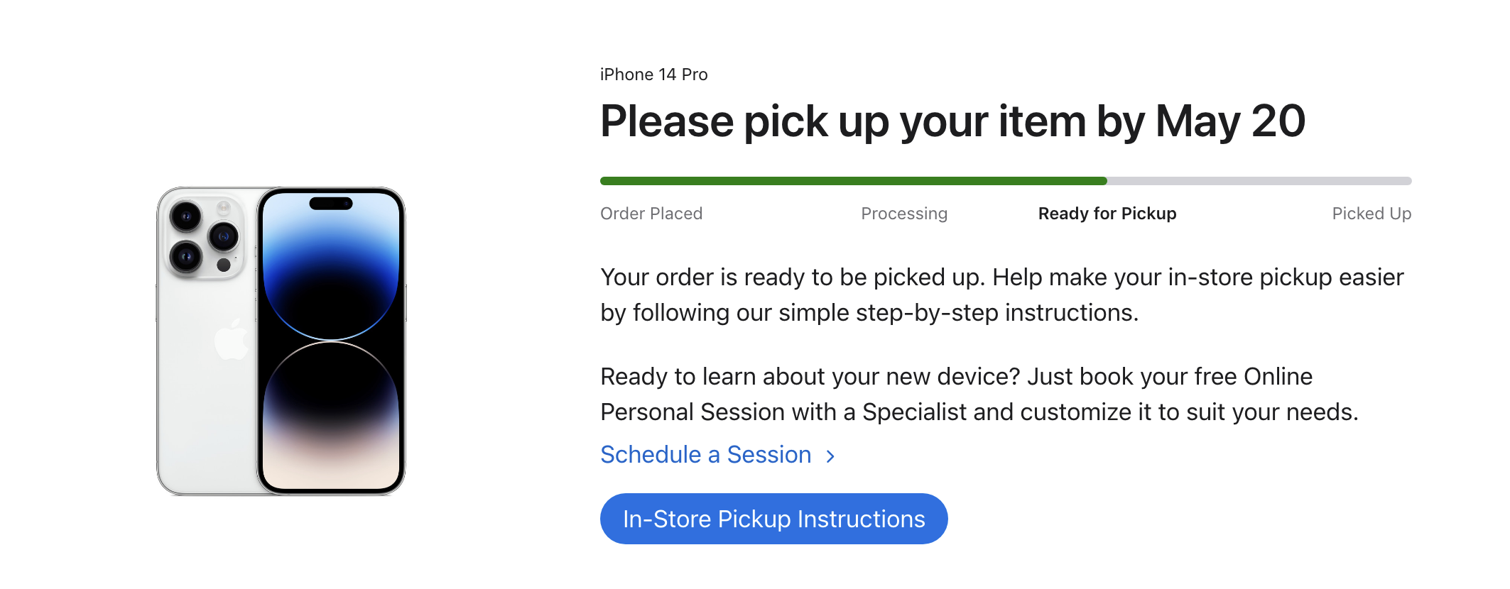 Please pick up your item by May 20...