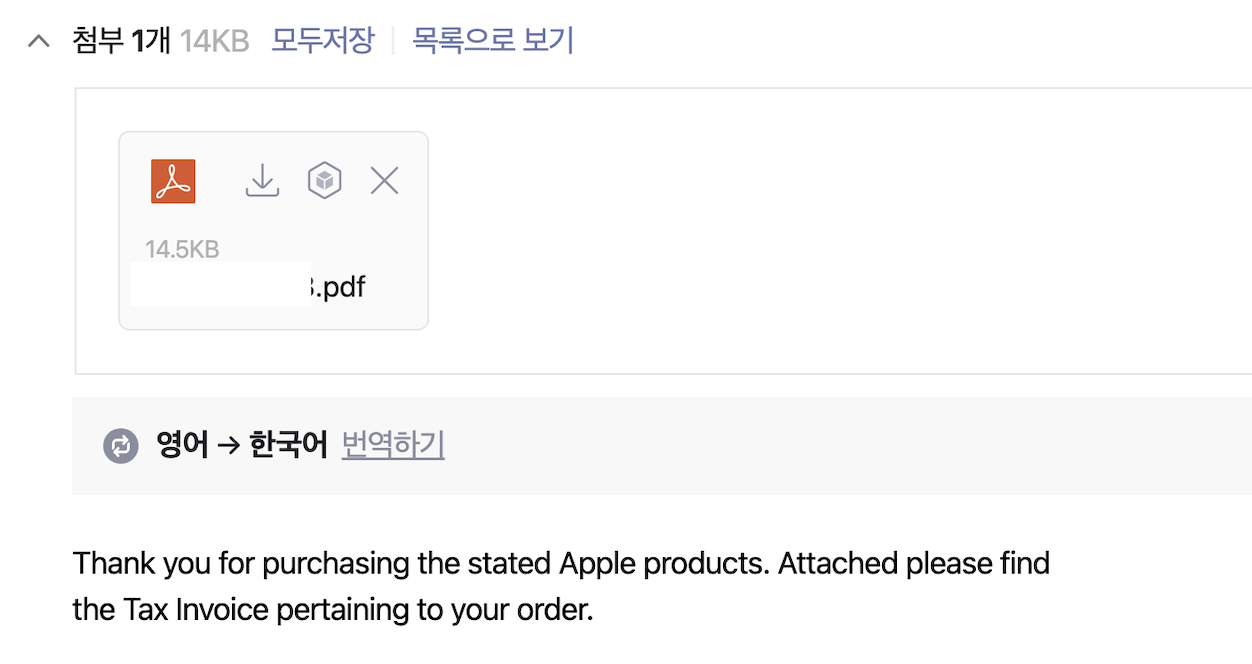 인보이스와 QR코드 메일 2개 옴