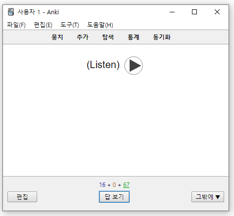 2. 무슨 뜻인지 기억이 나면 스페이스 바를 누르고 정답 확인한다 - 답보고 전혀 모르면 키보드 1번 (10분뒤 다시) 난이도(최초학습)😓