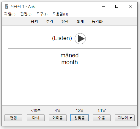 - 어렴풋이 기억나면 키보드 2번 (4일뒤 복습) 난이도 (어려움) - 한번더 외우고 싶으면 키보드 3번 (15일) 난이도 (알맞음)