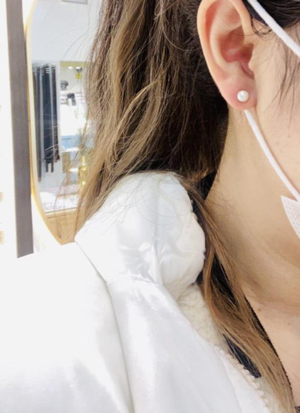 왼쪽은 진주모양 피어싱을 했다.