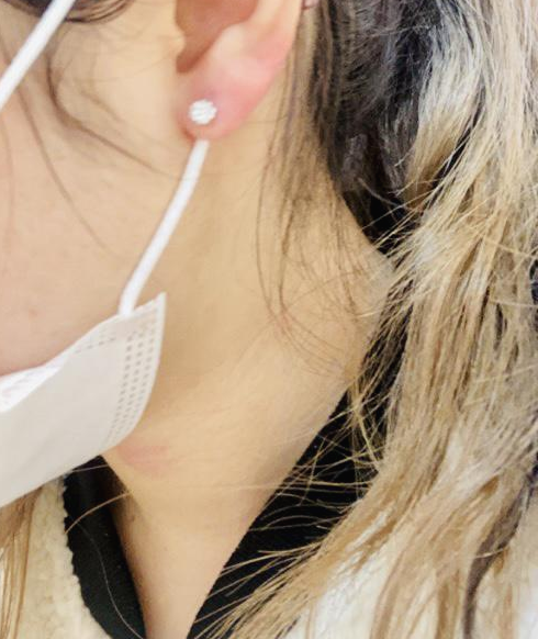 피어싱은 라운드 볼 타입이라 귀걸이 뒷부분이 전혀 거슬리지 않아서 회복에 좋다고 했다.