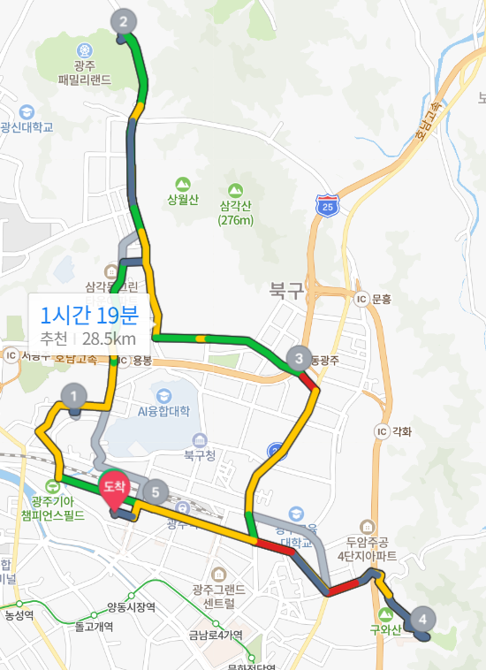 면허 따자마자 다음날 18일 초보스티커 붙이고나서 광주 북구와 동구를 한바퀴 돌았다. 북구 끝의 패밀리랜드, 동구 끝의 무등산을 들리고 다시 돌아오는 데에 28.5km를 주행했다. 미르에게 많이 고마웠고 운전에 대해서 생각을 많이 한 날.