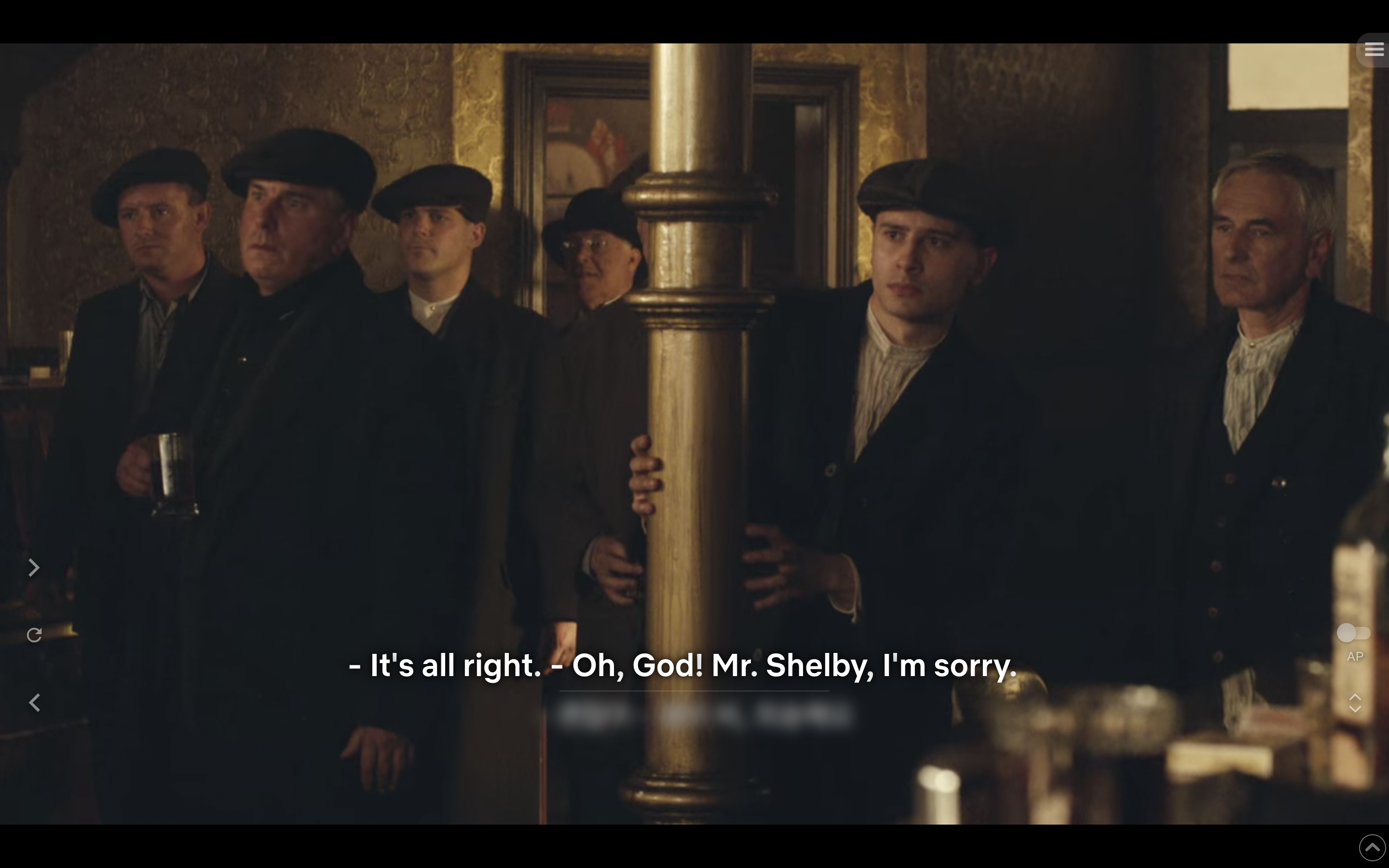 이대로 자막없이 드라마를 쭉 보다가 내용을 살짝 엿보고싶다면 E키를 누르면 그 자막만 번역이 보인다. 다시 화살표 앞, 뒤 키나 A, D키를 누르면 자막은 계속 사라져있다. 이건 정말 내가 좋아하는 기능이다.