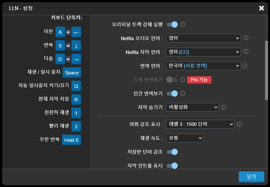 위의 기본 기능인 반복구간으로도 충분히 영어공부를 무료로 할 수 있지만, 자막 저장 기능이 궁금해서 Pro 기능을 구매해서 사용해보았다.