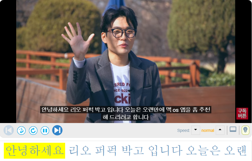 원하는 문장을 원어민 영상으로부터 추출하여 영어발음을 좀 더 빠르게 학습하고 보다 자연스럽고 캐쥬얼한 영어를 연습할 수 있다.