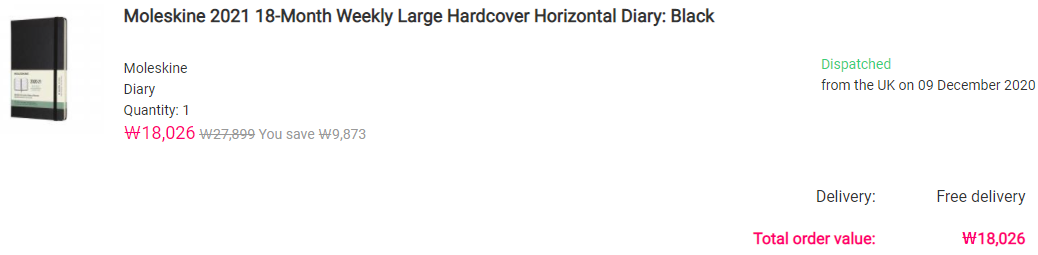 12월 6일 밤에 주문한 새 해 다이어리가 드디어 도착했다!