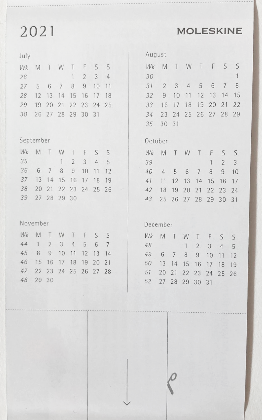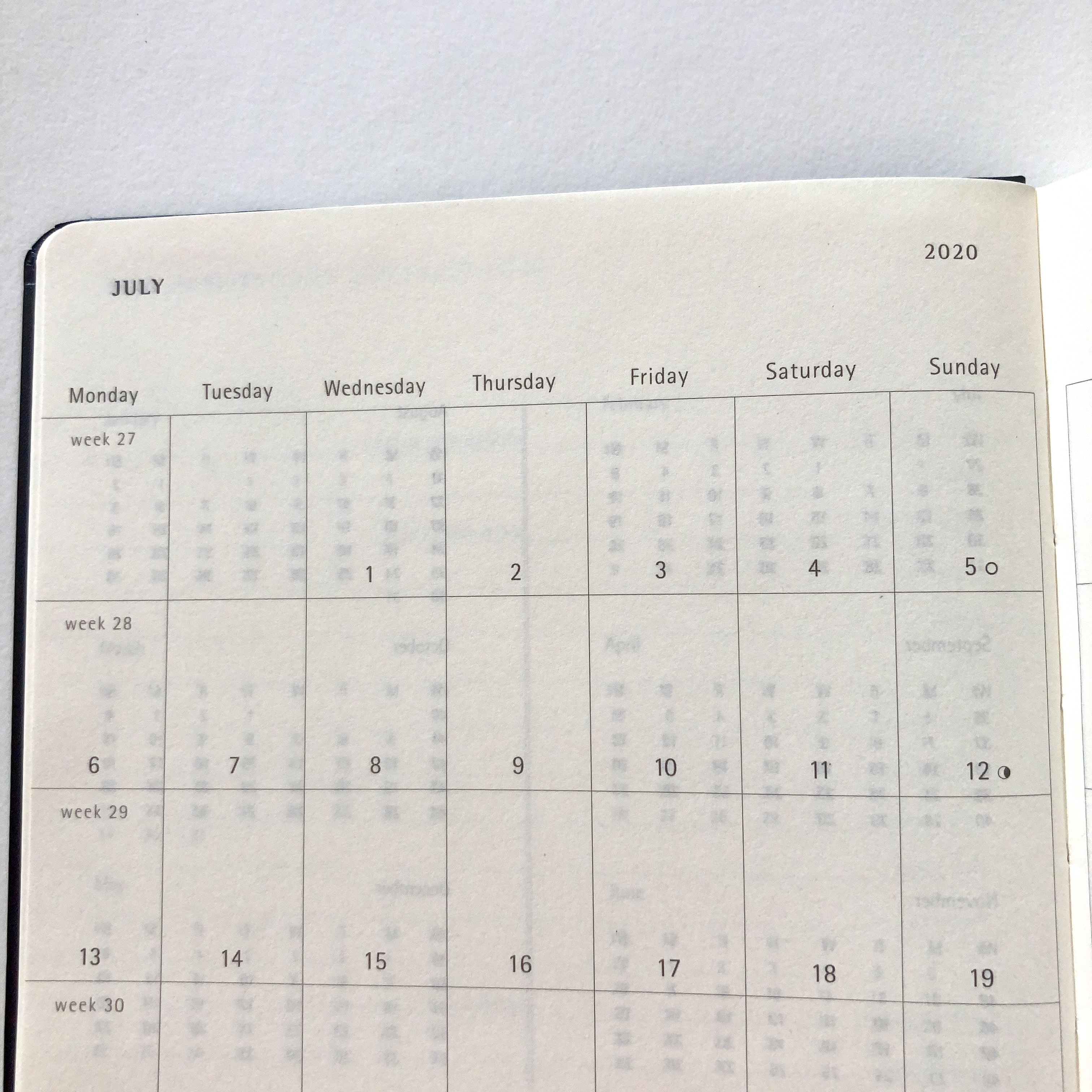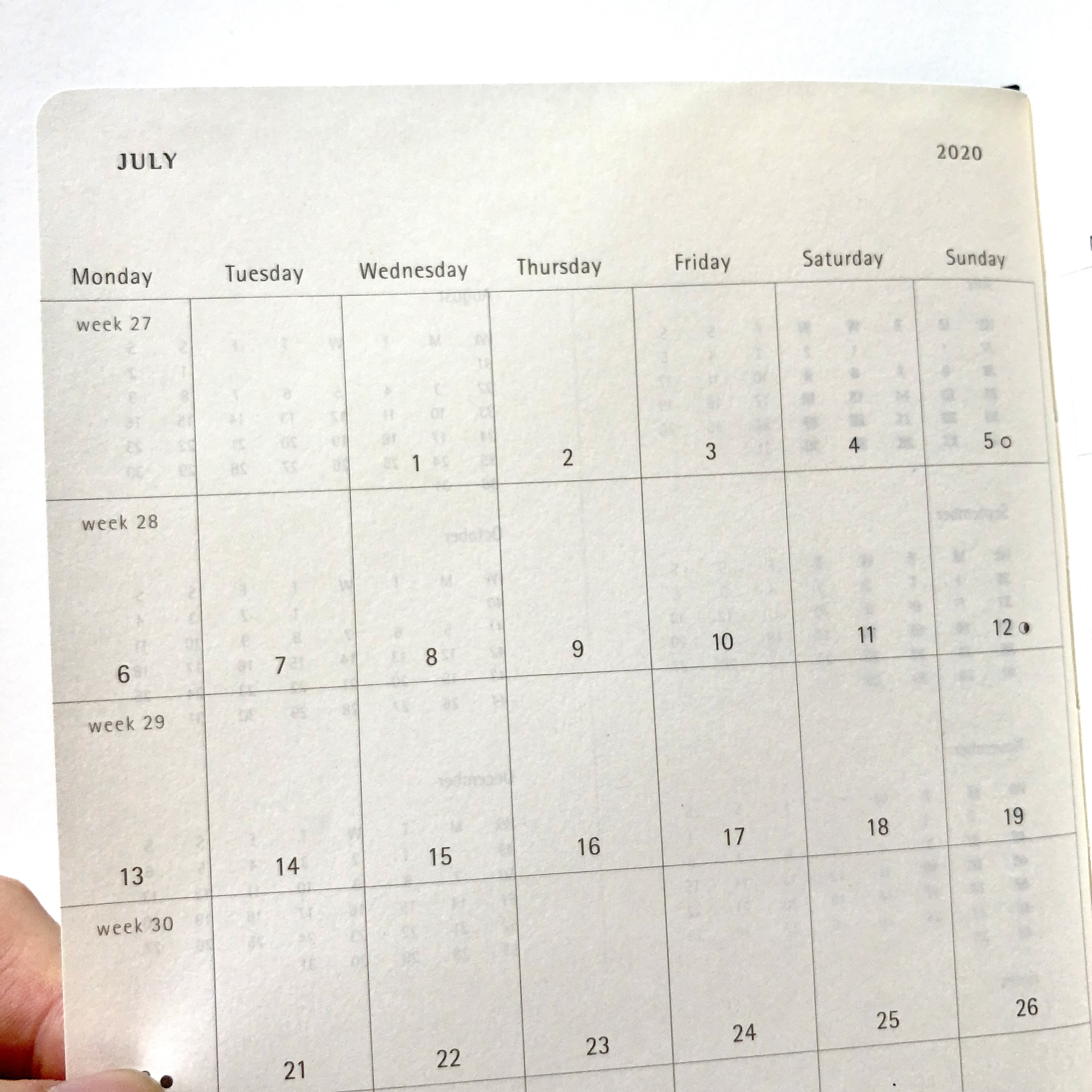 2020년과 이어지는 18개월 다이어리라서 2020년 7월부터 월간 달력이 있다.