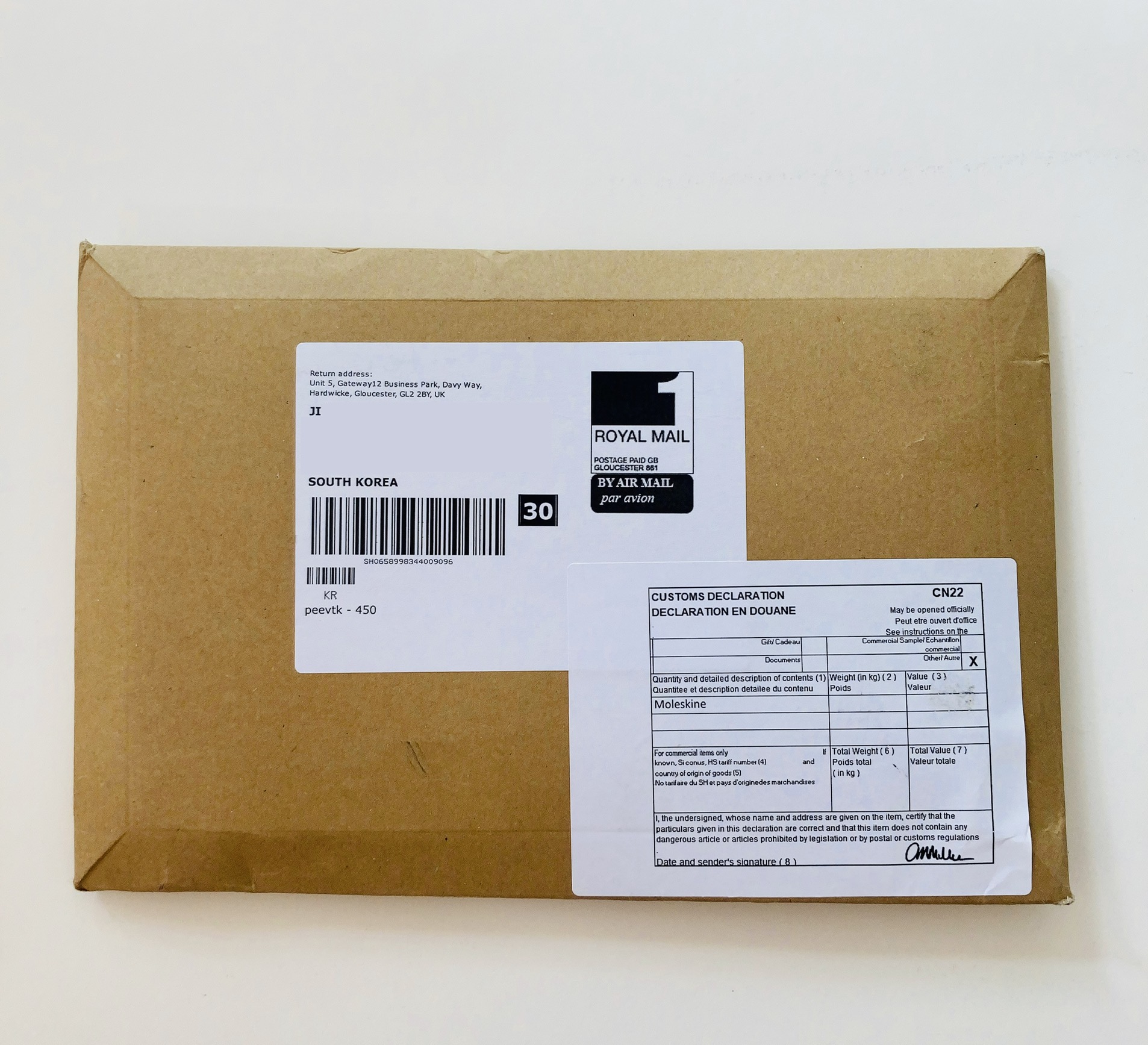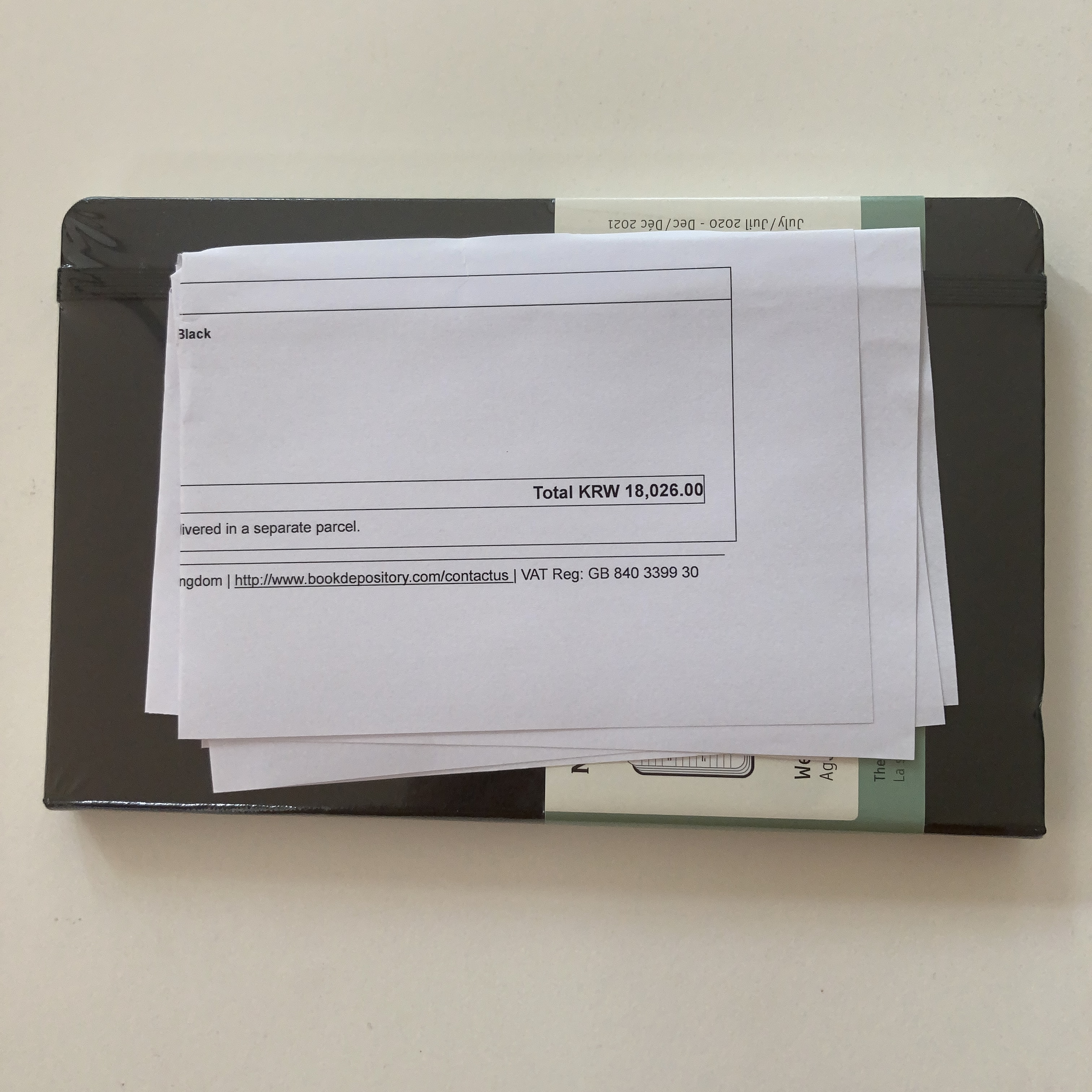 내용물은 주문한 몰스킨 1권과 곁가지로 홍보용 책갈피, 금액이 적힌 주문서가 동봉되어 있었다.