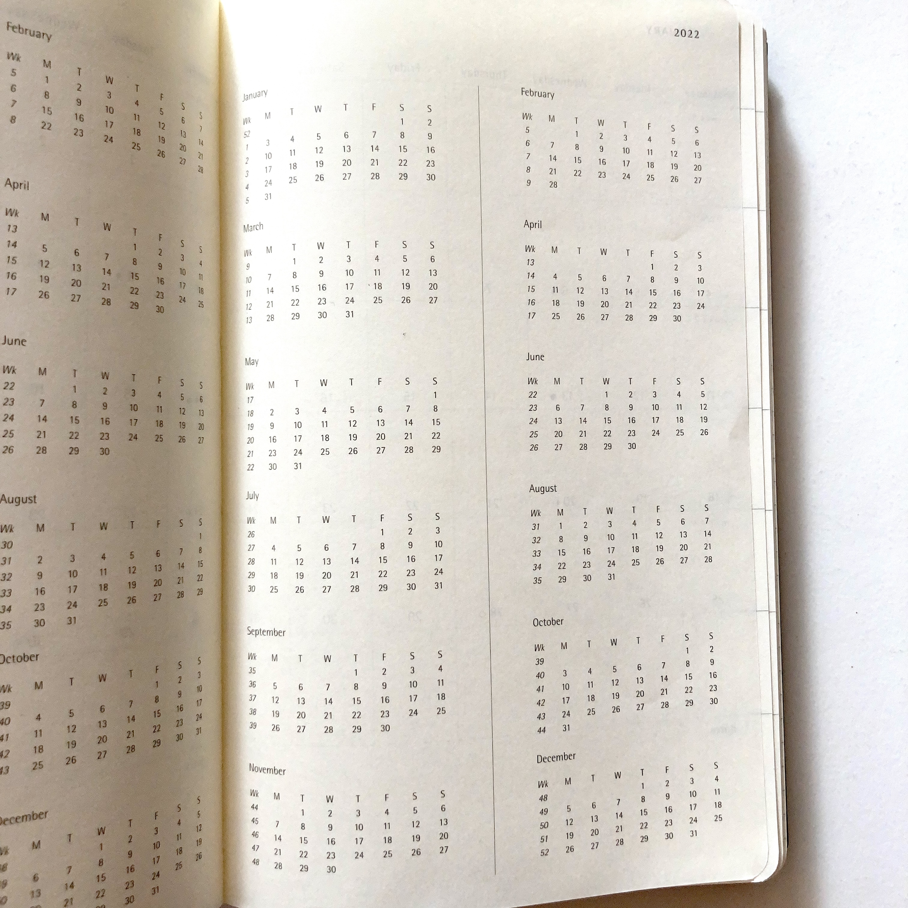 연간/월간 달력, 여행자 코너를 지나면 1월 1일부터 12월 31일까지 53주간 날짜와 달력이 써있는 위클리 플래너가 나온다. 나는 여기에서 주로 내 기록을 써 나갈 것이다.