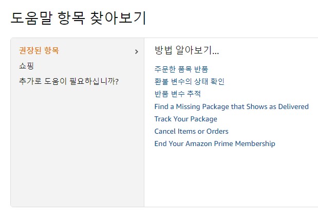아마존 첫 화면에서 맨 밑으로 내리면 도움말이 보인다. 클릭