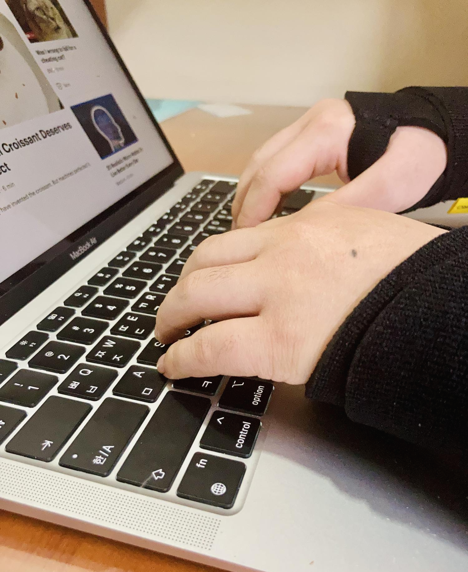 핸드폰, 키보드 타이핑, 마우스 등 손을 쓰는 경우는 많기 때문에 통증이라도 최소화 하자고 손목보호대를 사기로 했다.