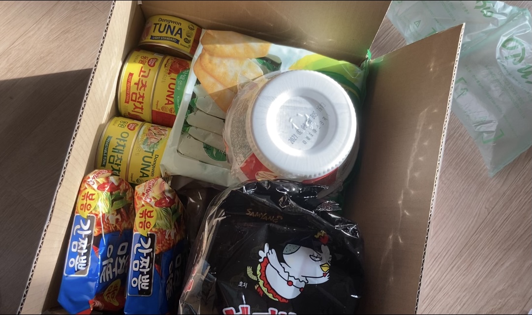 저번에 스낵 많이 보내서 좀 더 큼직한 면류, 그 외 한국 참치 종류별로 포장하고 밥이랑 먹을 수 있는 것들을 보냈다.