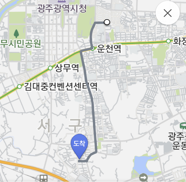 - 올 때: 1번. 금호동 올 때는 화정역~돌고개역~농성라이온스회관, 그쪽 따라 올라가기.