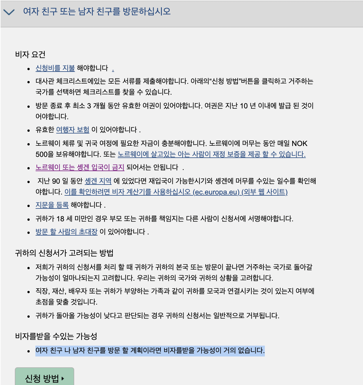 UDI에 전화했을 때 '9개월, 1번 이상의 만남' 비자허용, 이런 기사내용 같은건 불가능한걸로 답변 받았다.